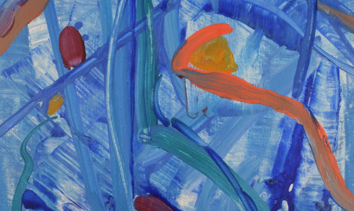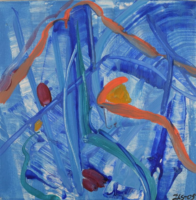 Ivy Lysdal, f 1937. Dansk keramiker og kunstmaler. Akryl på lærred. Abstrakt modernistisk maleri. Koloristisk palette. Dateret 2005.