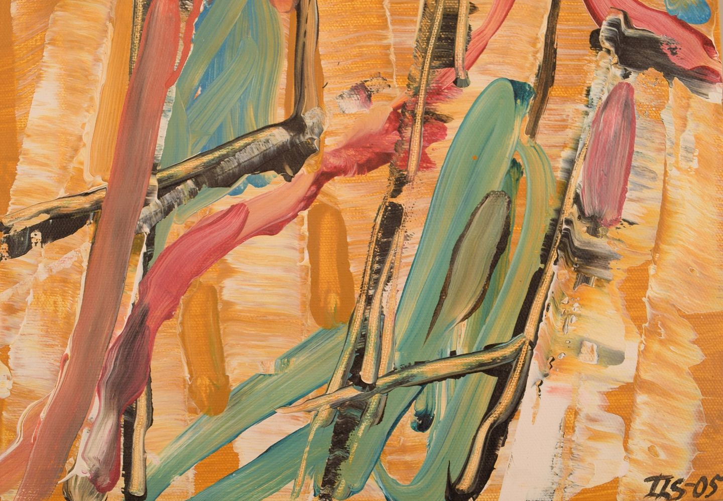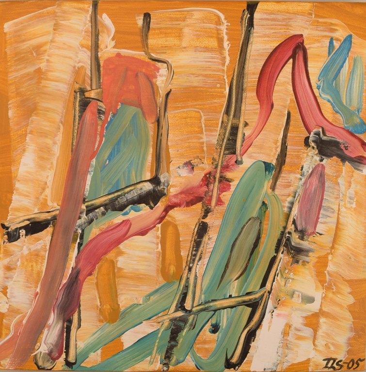 Ivy Lysdal, f 1937. Dansk keramiker og kunstmaler. Akryl på lærred. Abstrakt modernistisk maleri. Koloristisk palette. Dateret 2005.