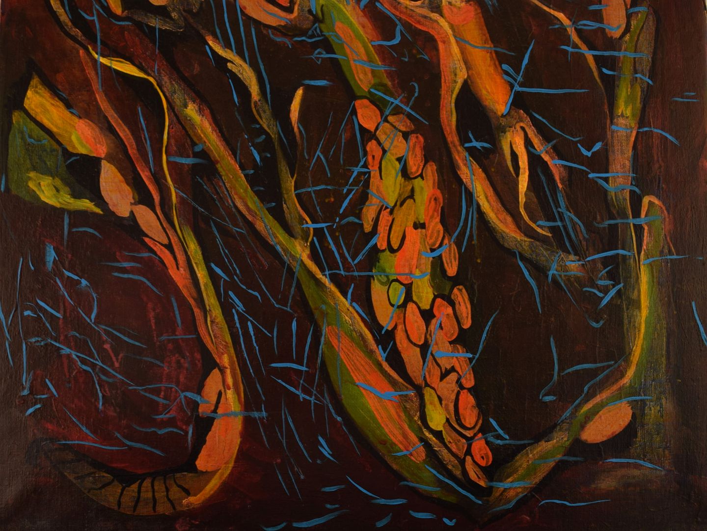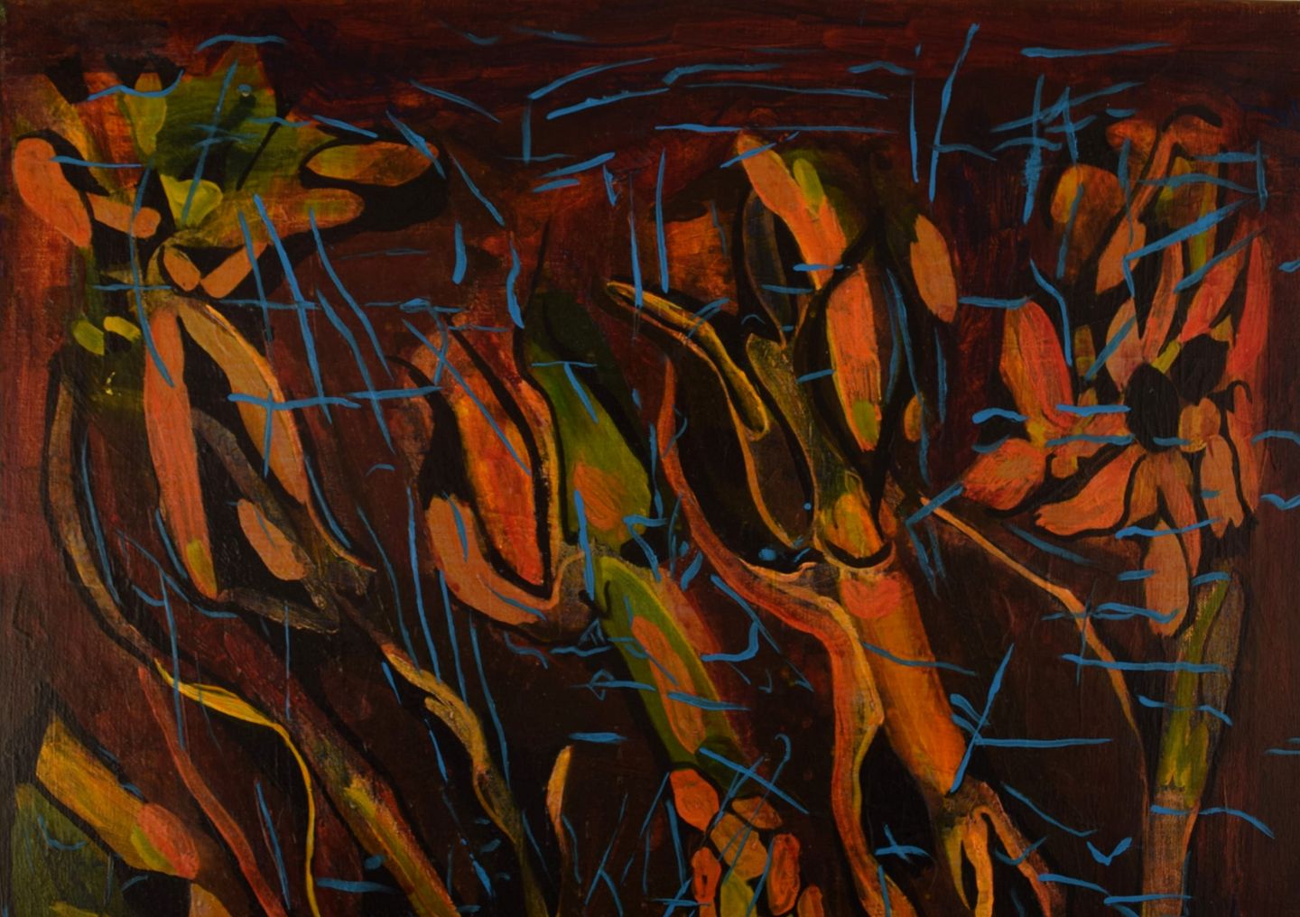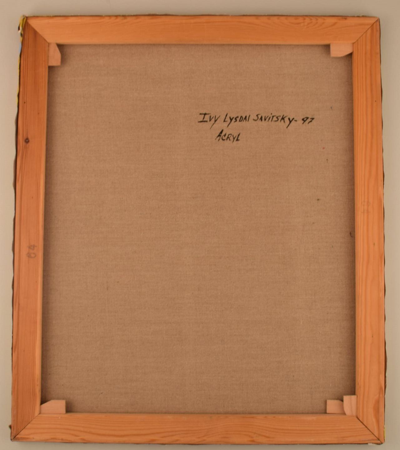 Ivy Lysdal, f 1937. Dansk keramiker og kunstmaler. Akryl på lærred. Abstrakt modernistisk maleri. Koloristisk palette. Dateret 1997.