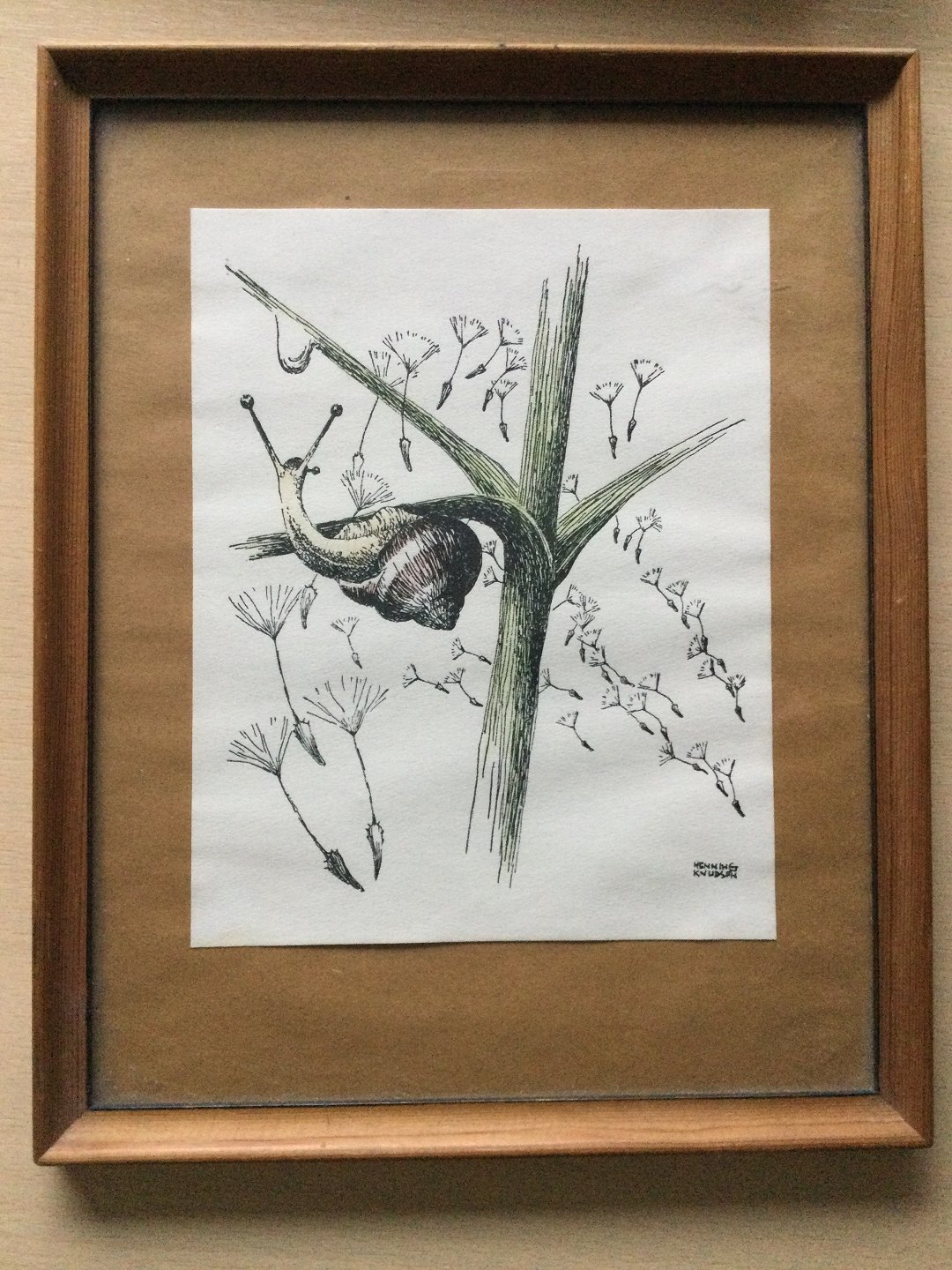 Motivet med snegl og motivet med bille har jeg også med anden indramning.