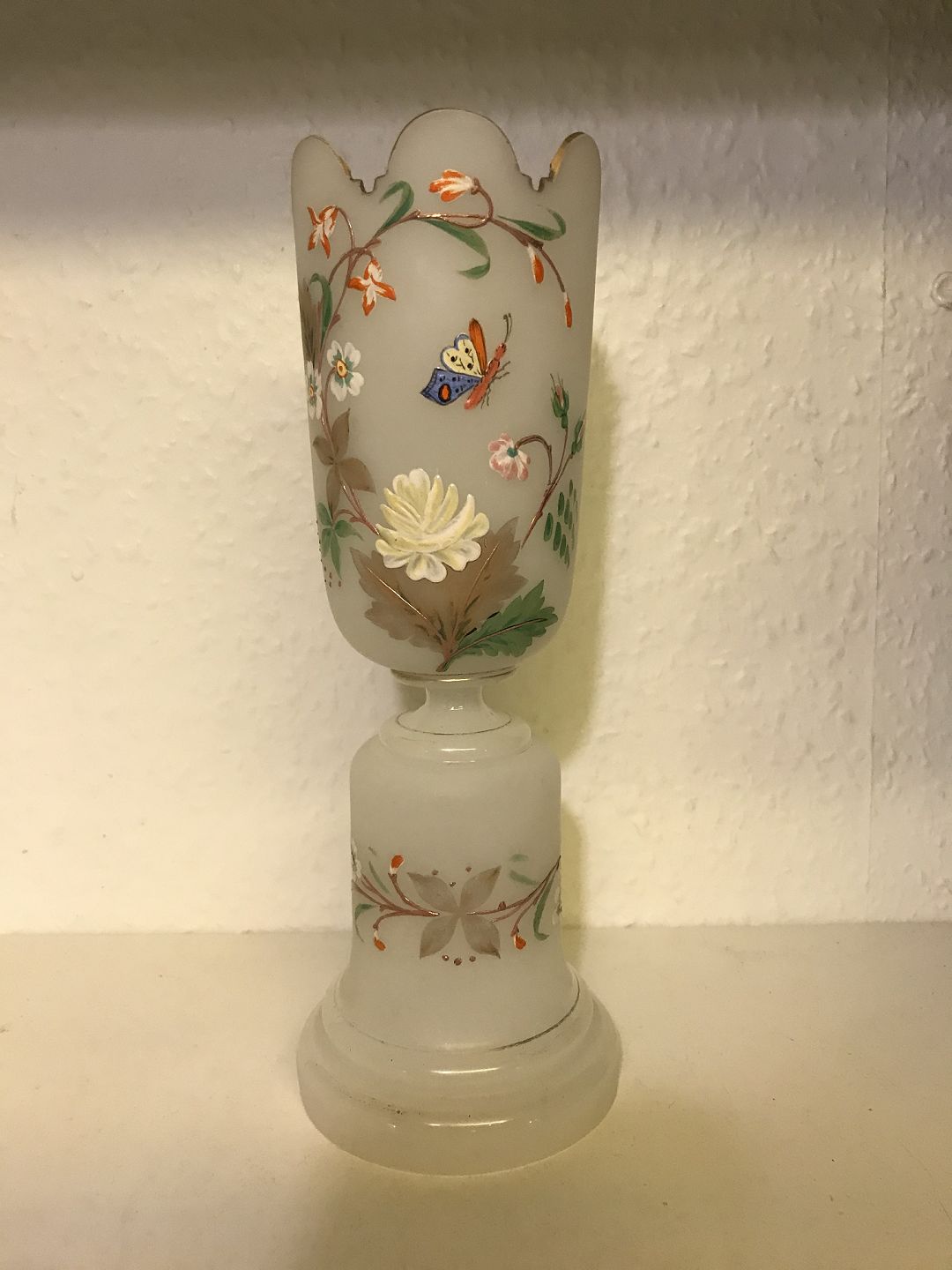Blomster vase med sommerfugl. Højde 25 cm.