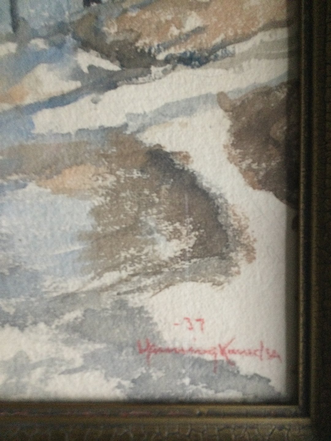 Akvarel Henning Knudsen - "Vinterparti med nøgne træer ved vej 1937"