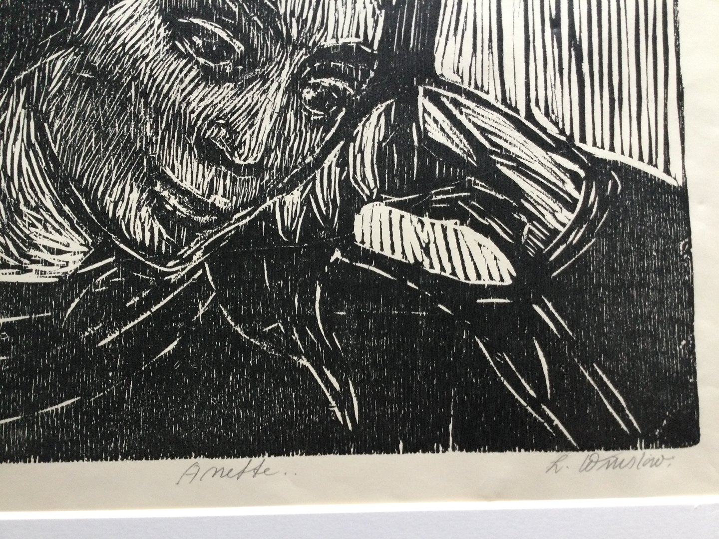 Linoleumssnit af Lasse Winsløw 1968 - Pigeportræt "Anette"