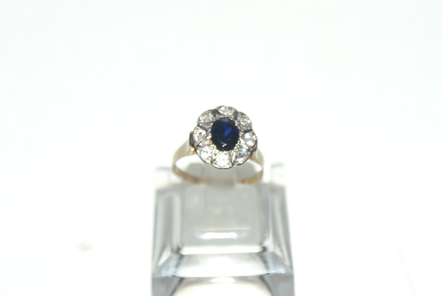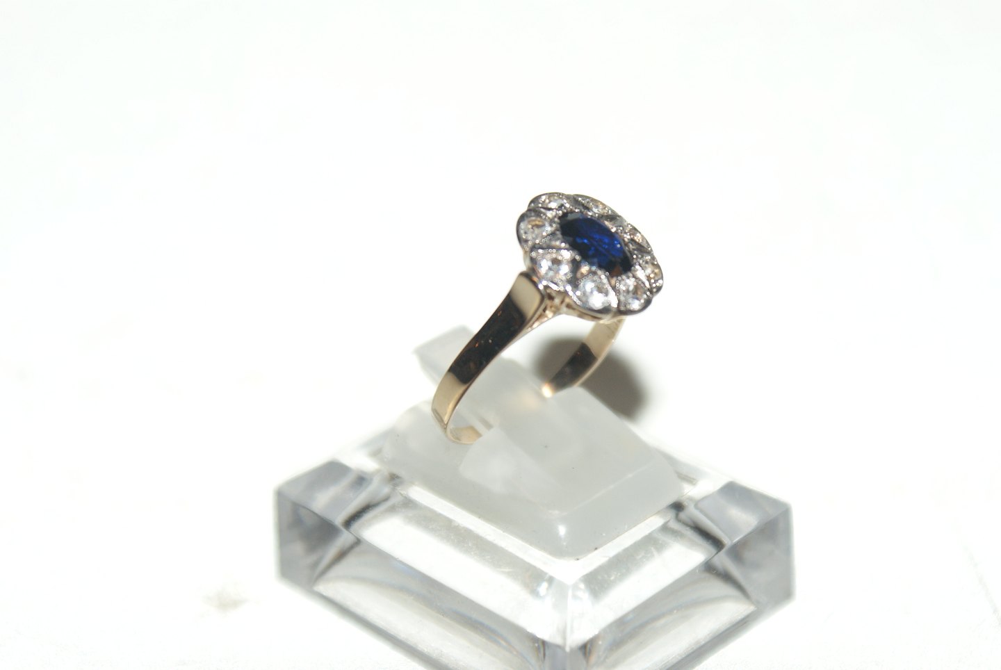 Elegant dame ring med mørkeblå sten i 14 karat guld