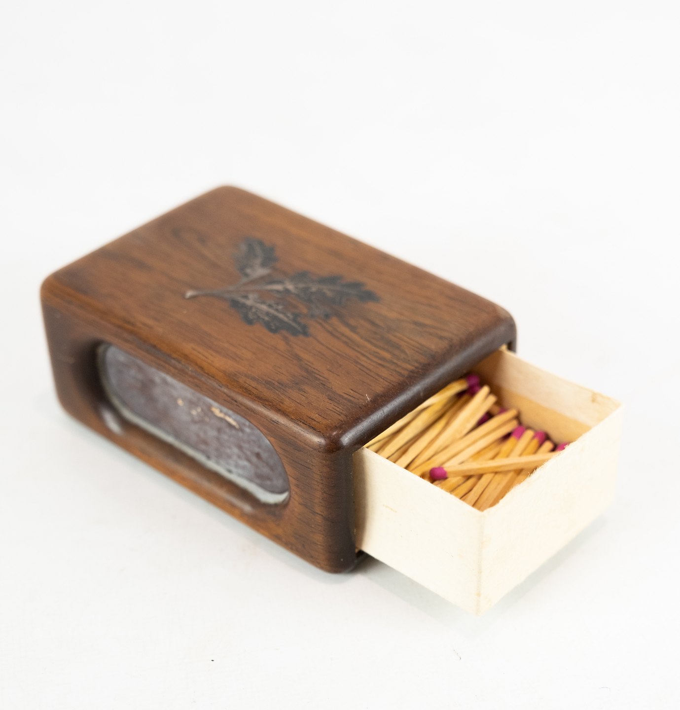 Stor tændstikæske i palisander dekoreret med bladmotiv.