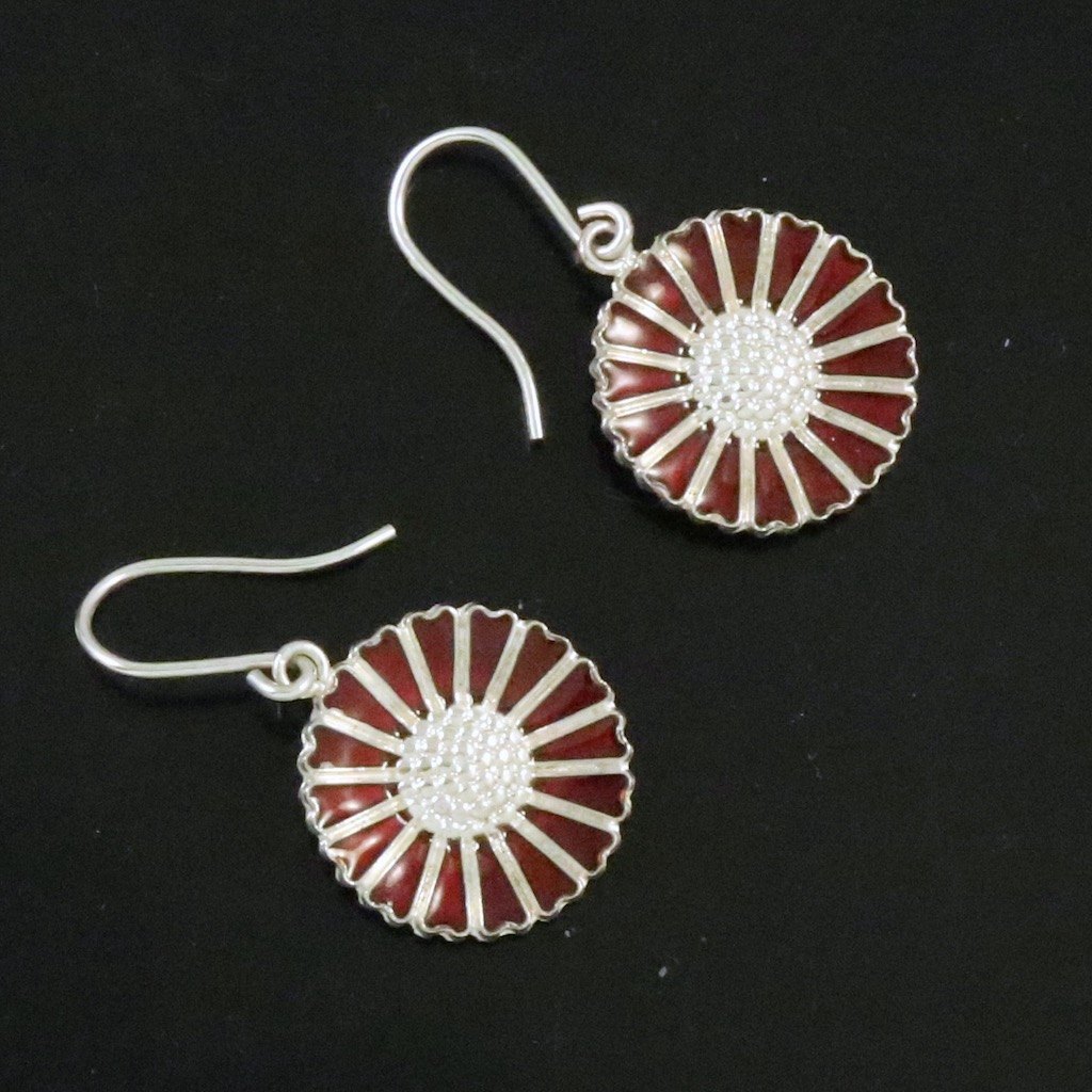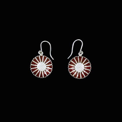 Bernhard Hertz. Marguerit / Daisy Ørekroge i sterling sølv med bordeaux emalje. 18mm