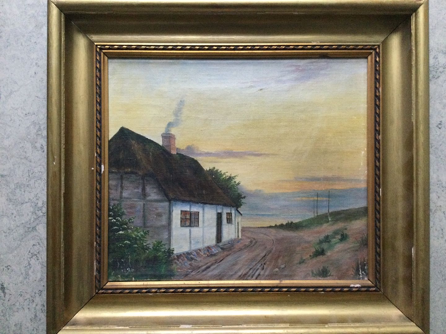Maleri - Aftenstemning ved Hjarbæk 1920.