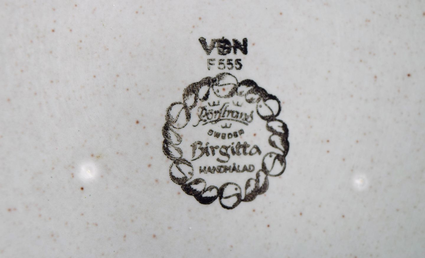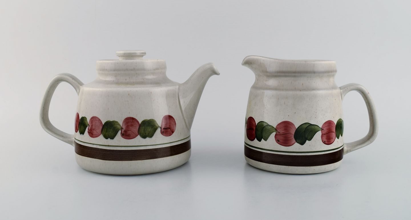 Jackie Lynd for Rörstrand. Birgitta te- og mælkekande i håndmalet glaseret stentøj. 1970'erne.