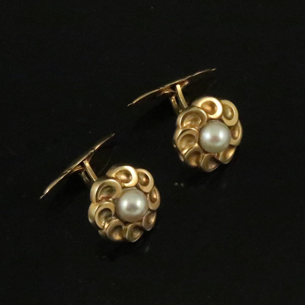 Evald Nielsen 1879 - 1958. Manchetknapper i 14k guld med Perler.