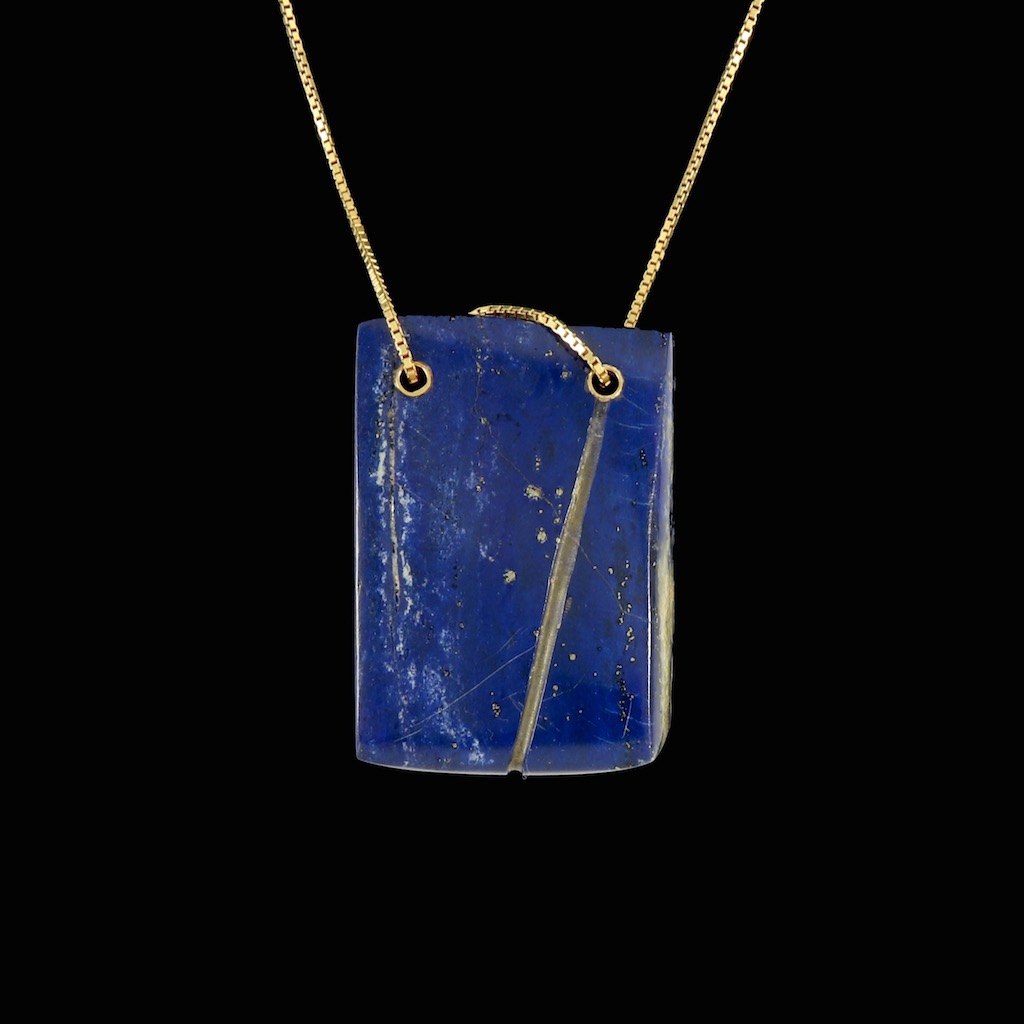 Stort Lapis Lazuli vedhæng på kæde i 14k guld.