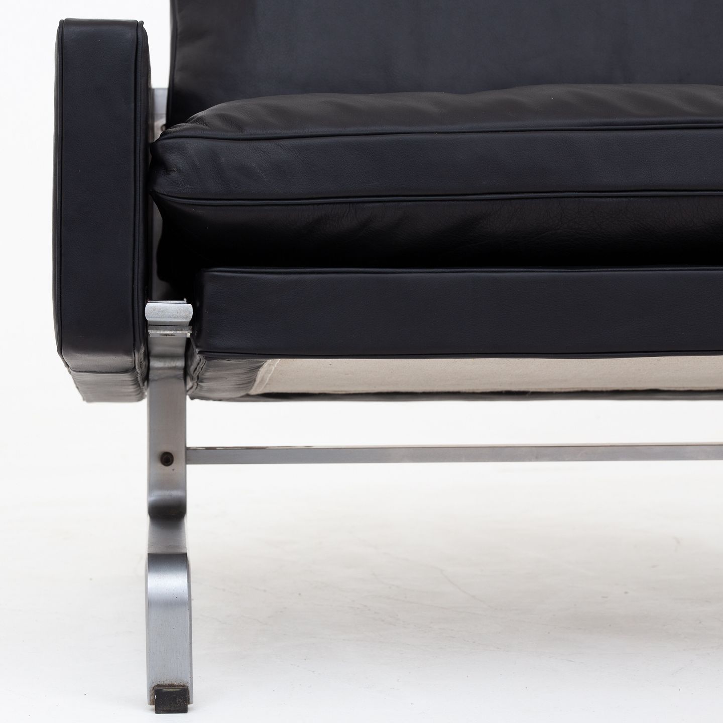 PK 31/1 - Nybetrukket lænestol i Shade-læder (Pitch Black) på stel af stål. KLASSIK tilbyder polstring af lænestolen med stof eller læder efter eget valg.