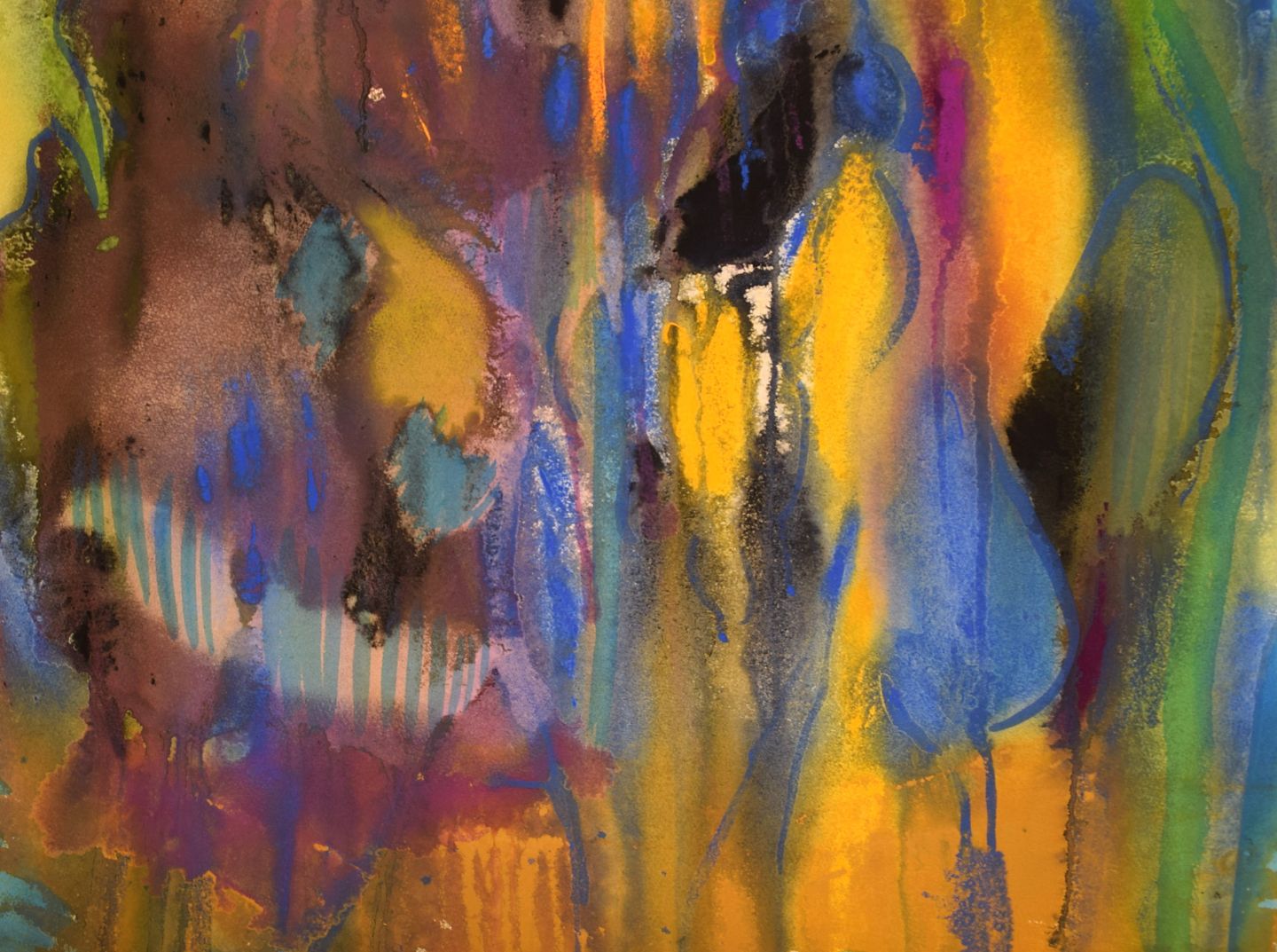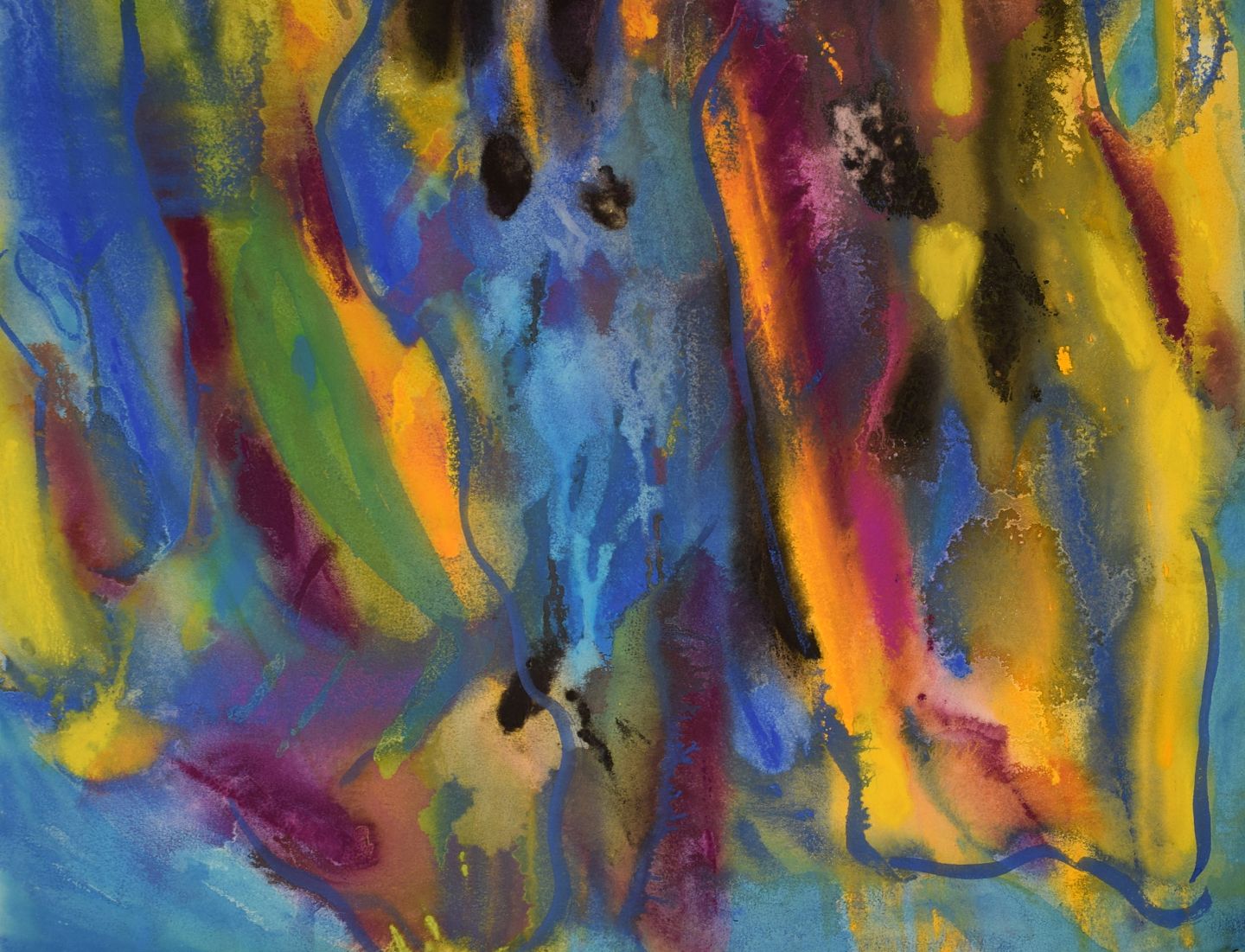 Ivy Lysdal, f 1937. Dansk keramiker og kunstmaler. Gouache på karton. Abstrakt modernistisk maleri. Koloristisk palette. Sent 1900-tallet.