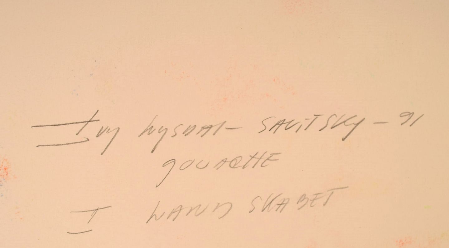 Ivy Lysdal, f 1937. Dansk keramiker og kunstmaler. Gouache på karton. Abstrakt modernistisk maleri. Koloristisk palette. Dateret 1991.