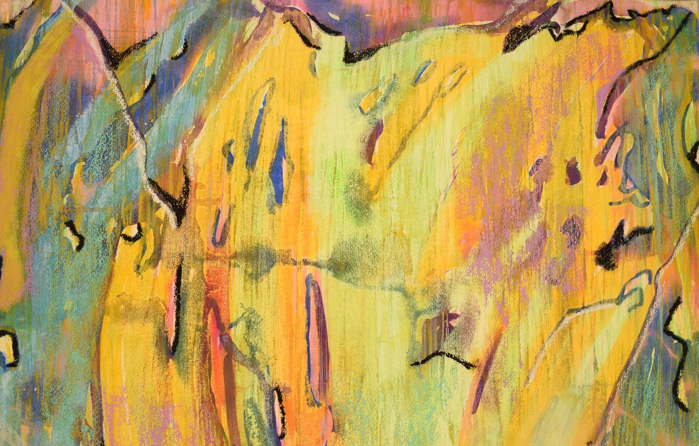 Ivy Lysdal, f 1937. Dansk keramiker og kunstmaler. Gouache på karton. Abstrakt modernistisk maleri. Koloristisk palette. Sent 1900-tallet.