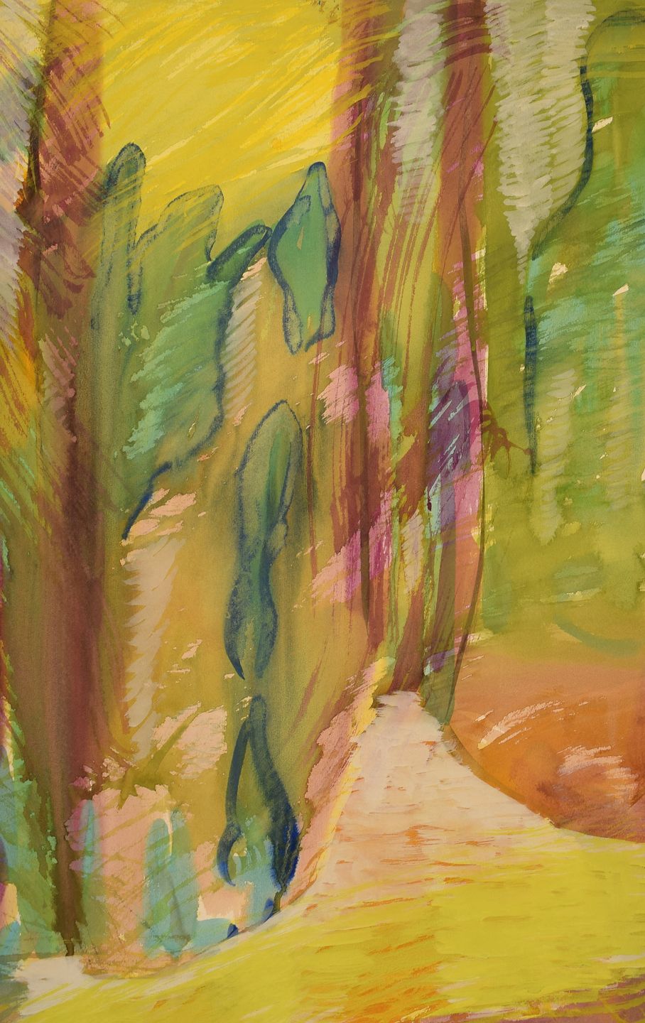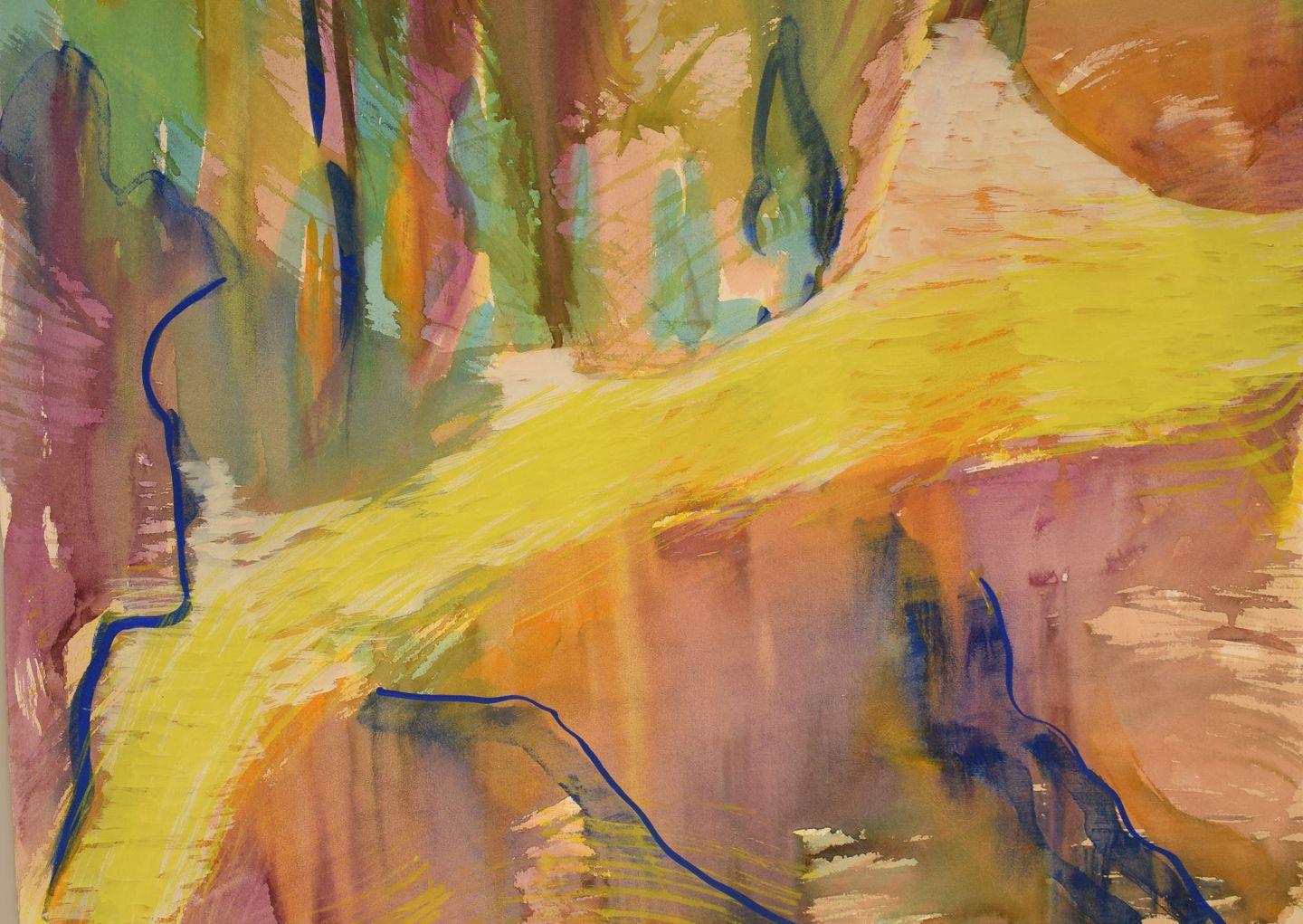 Ivy Lysdal, f 1937. Dansk keramiker og kunstmaler. Gouache på karton. Abstrakt modernistisk maleri. Koloristisk palette. Sent 1900-tallet.