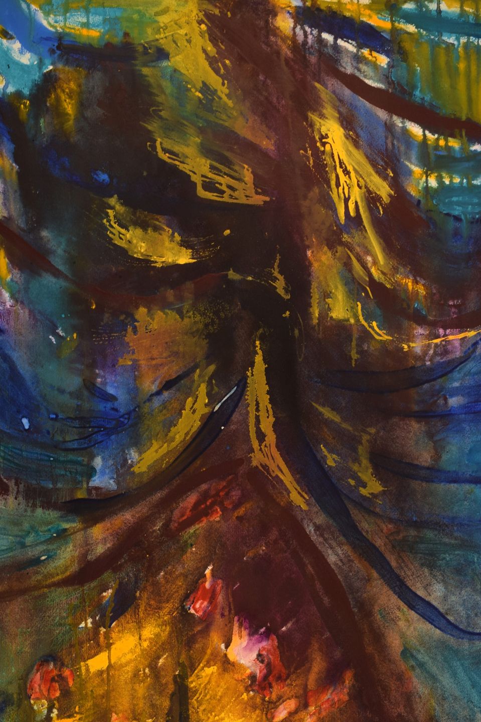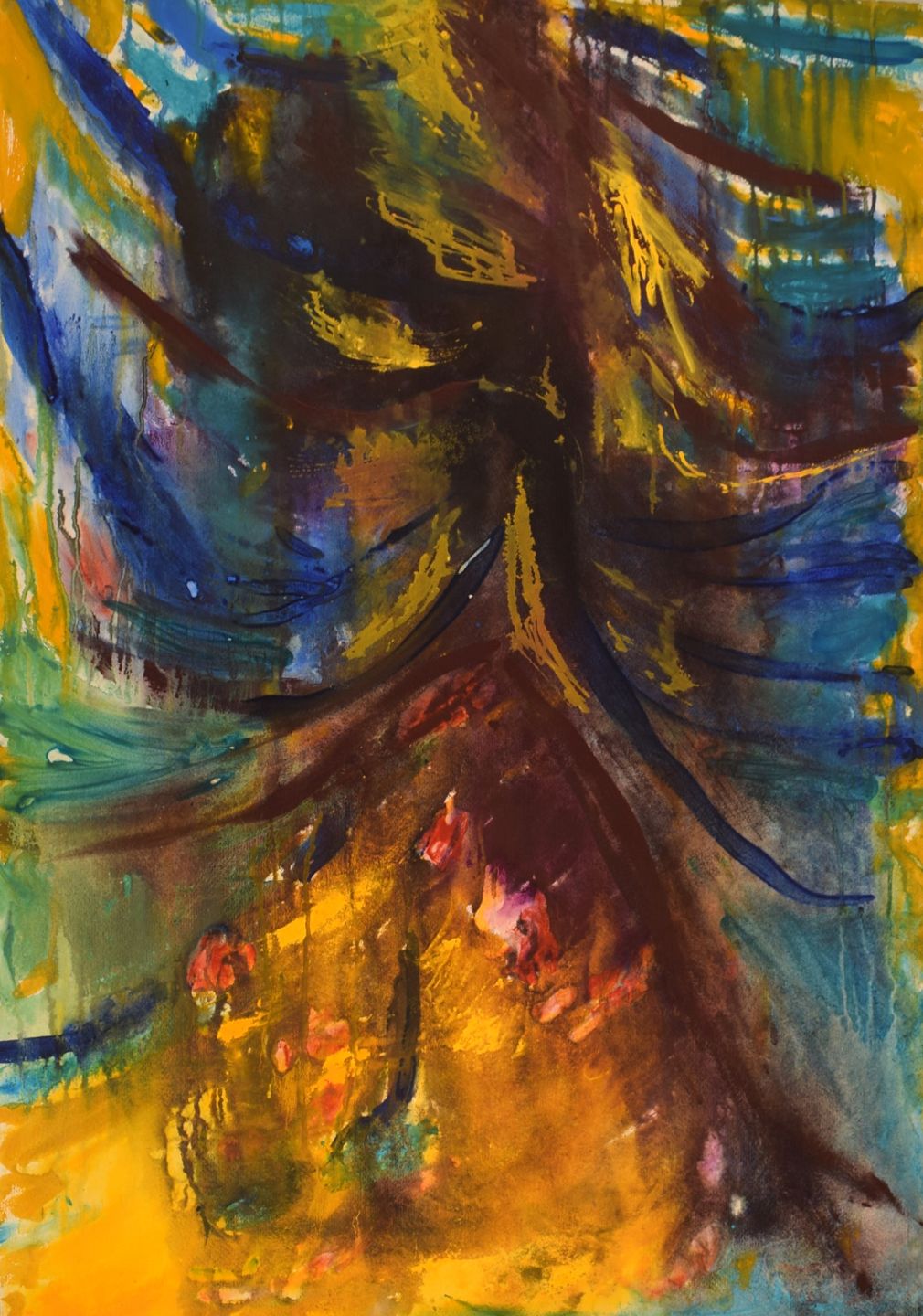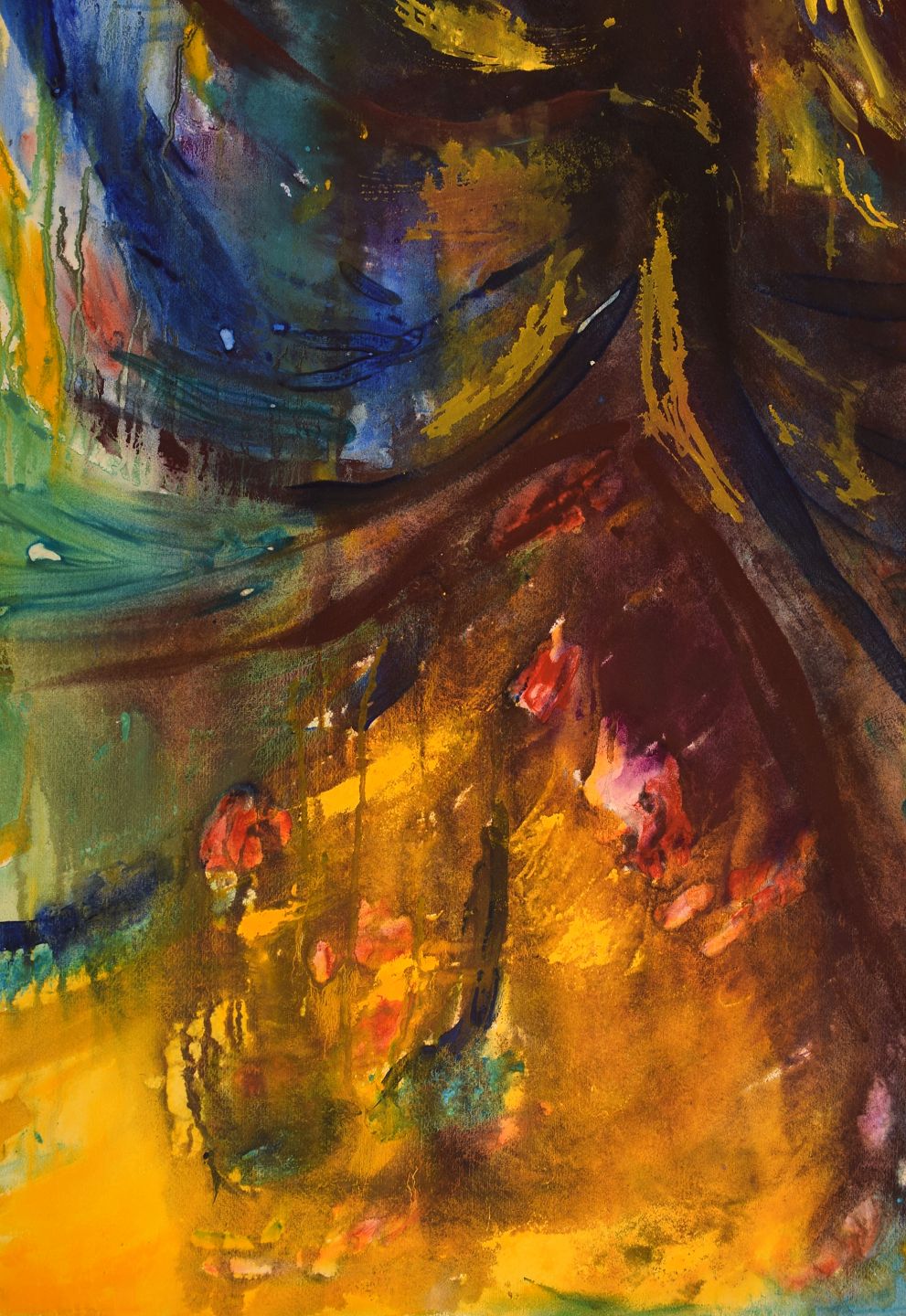 Ivy Lysdal, f 1937. Dansk keramiker og kunstmaler. Gouache på karton. Abstrakt modernistisk maleri. Koloristisk palette. Sent 1900-tallet.