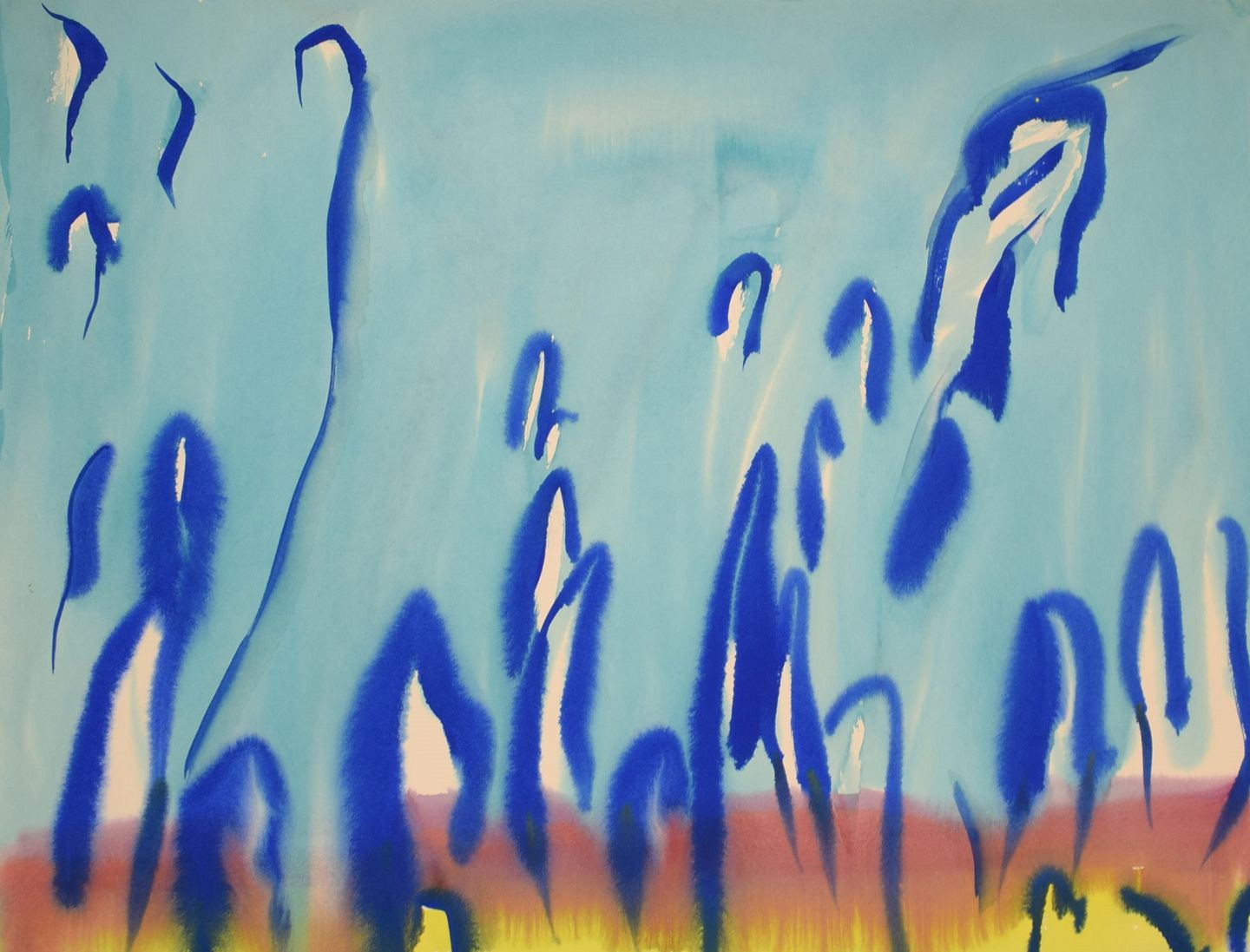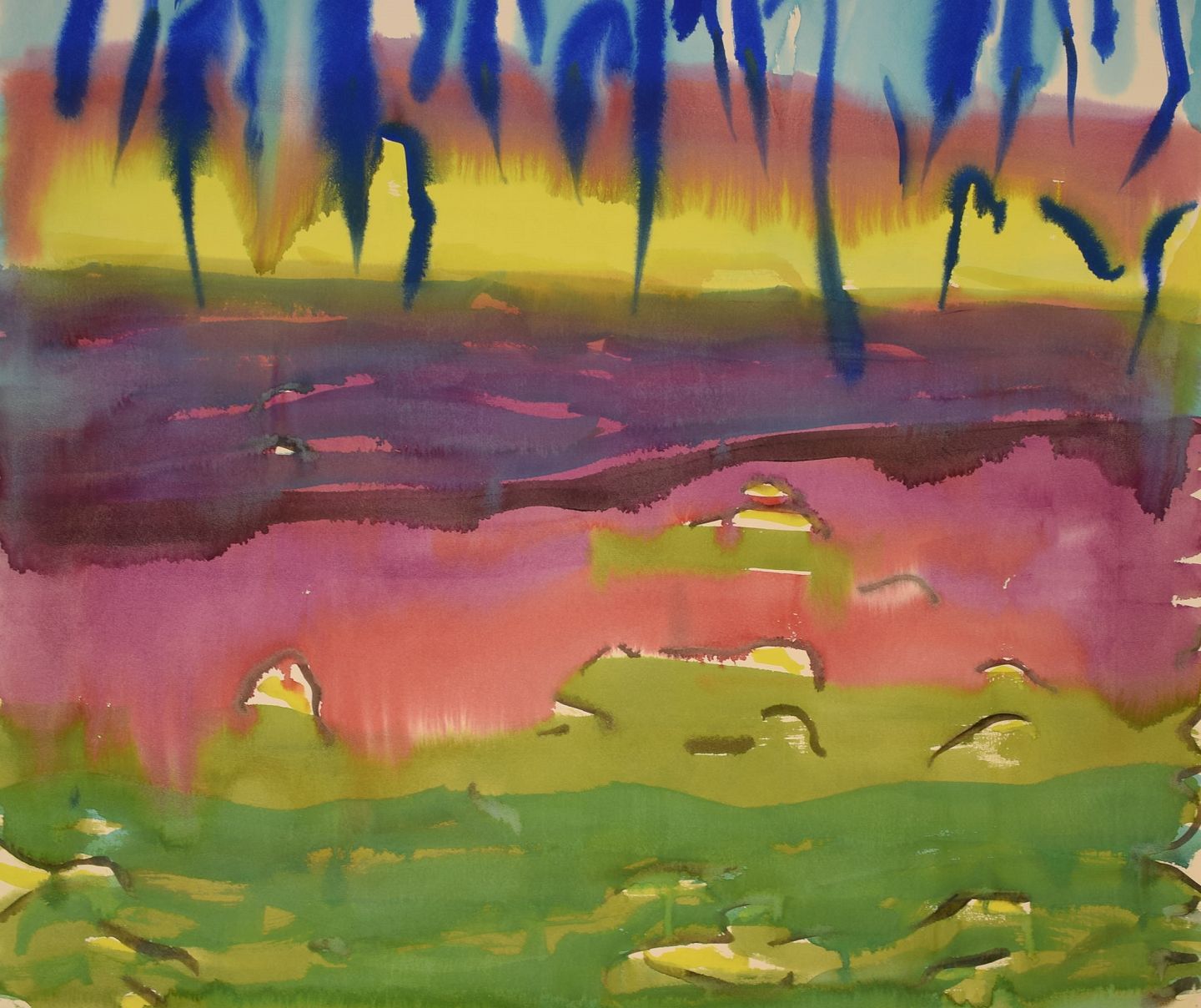 Ivy Lysdal, f 1937. Dansk keramiker og kunstmaler. Gouache på karton. Abstrakt modernistisk maleri. Koloristisk palette. Sent 1900-tallet.