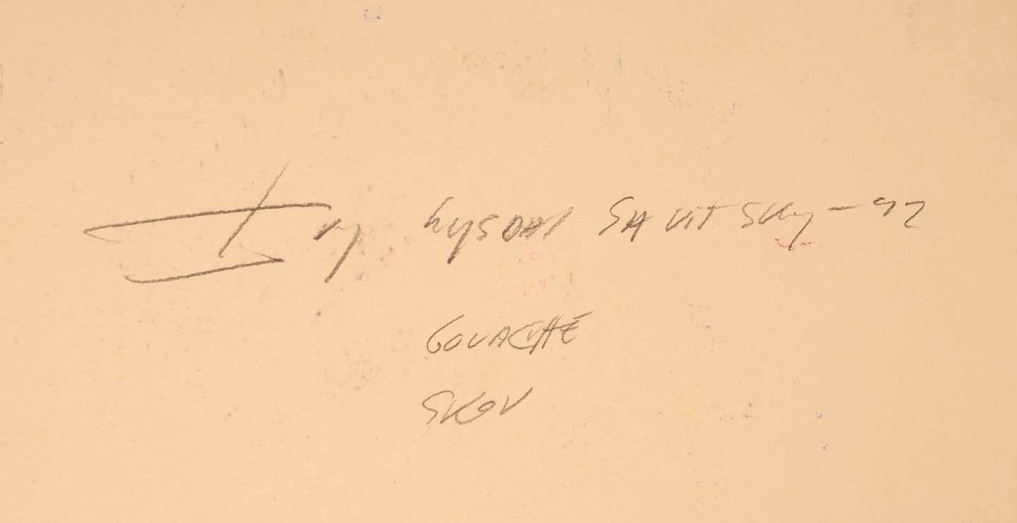 Ivy Lysdal, f 1937. Dansk keramiker og kunstmaler. Gouache på karton. Abstrakt modernistisk maleri. Koloristisk palette. Dateret 1992.