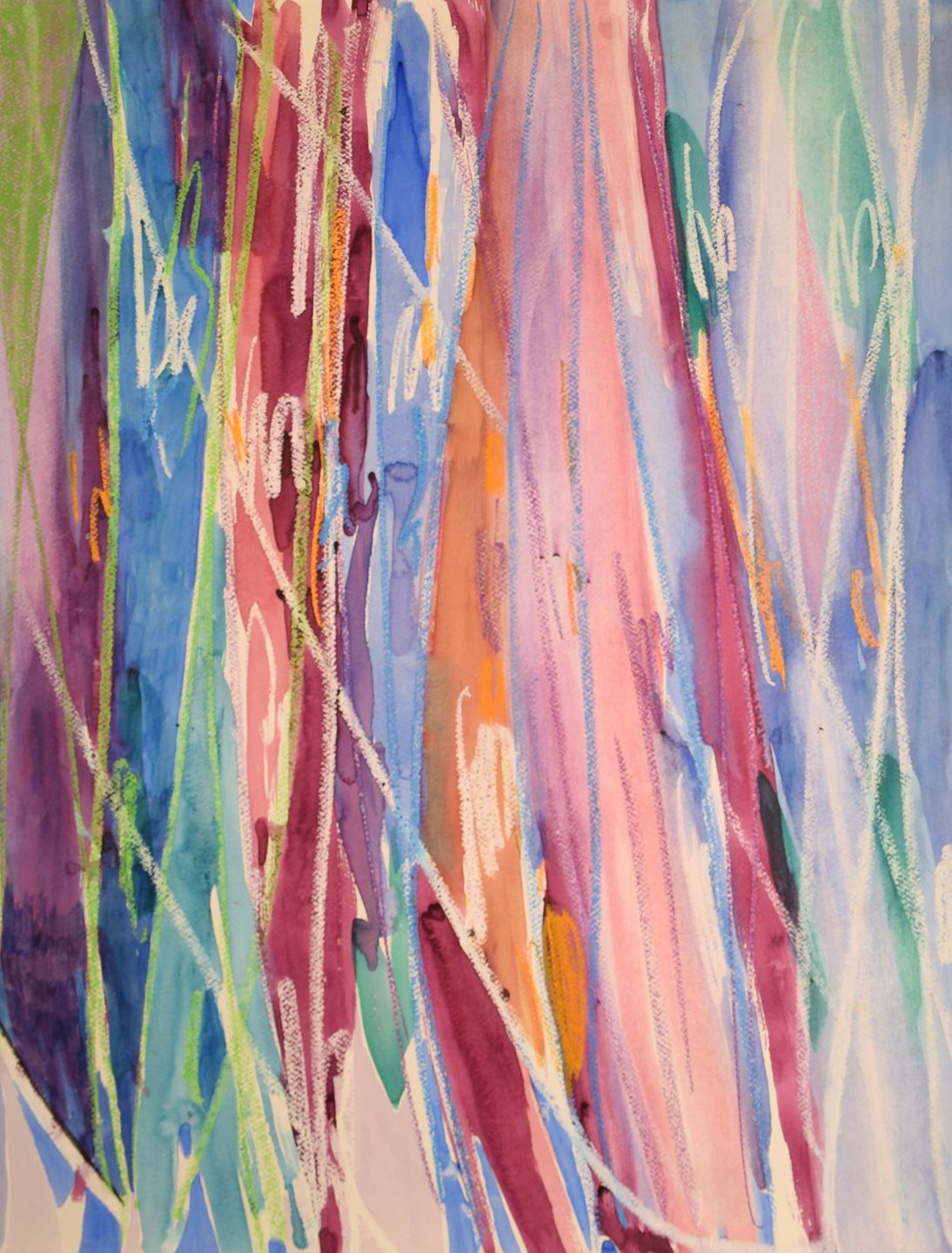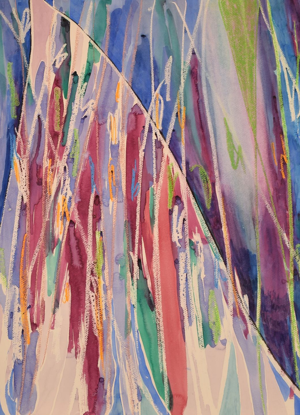 Ivy Lysdal, f 1937. Dansk keramiker og kunstmaler. Gouache på karton. Abstrakt modernistisk maleri. Koloristisk palette. Sent 1900-tallet.