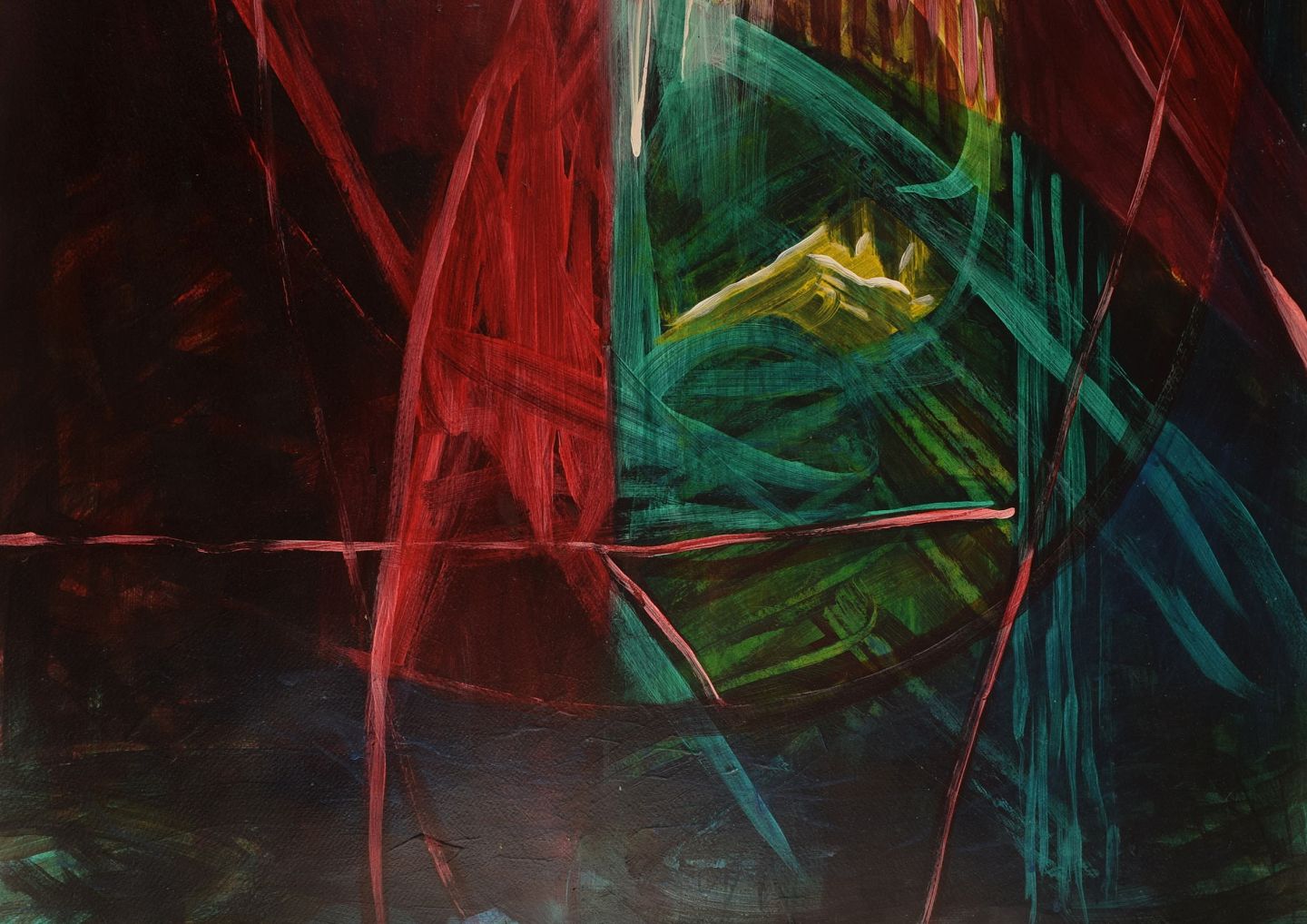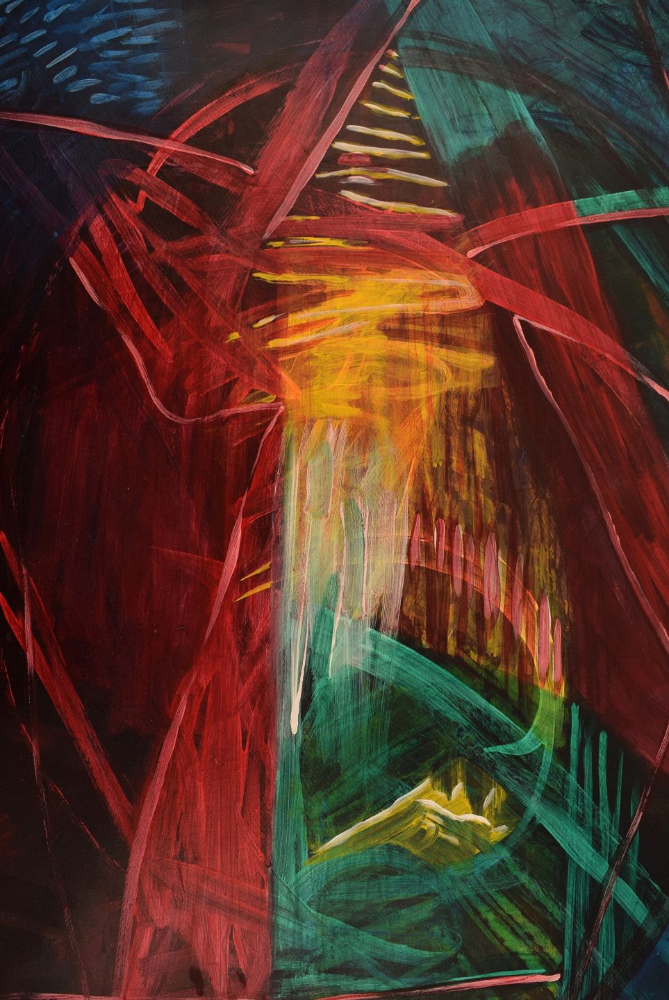 Ivy Lysdal, f 1937. Dansk keramiker og kunstmaler. Gouache på karton. Abstrakt modernistisk maleri. Koloristisk palette. Sent 1900-tallet.