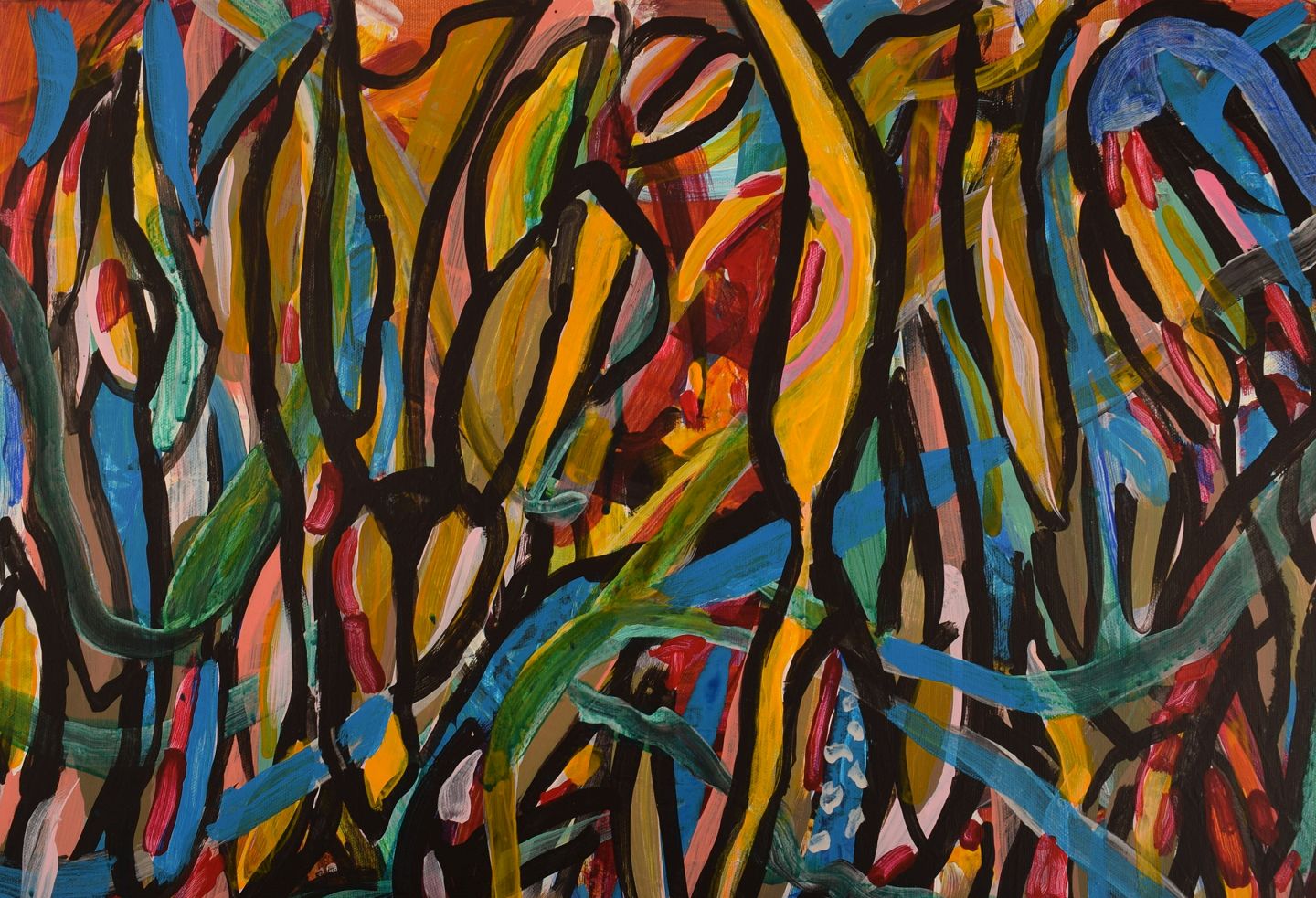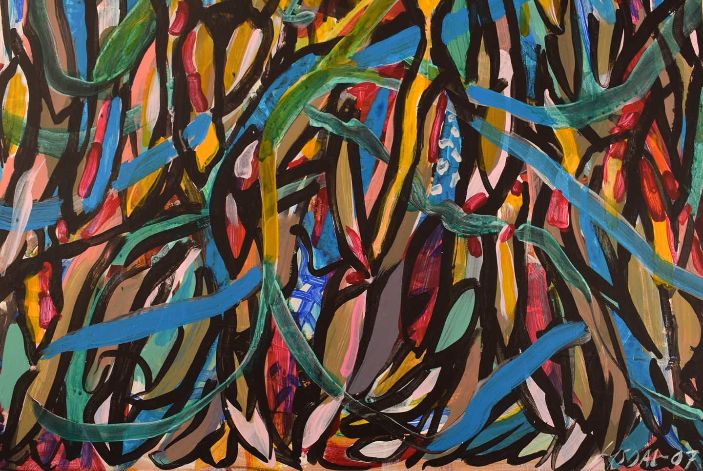 Ivy Lysdal, f 1937. Dansk keramiker og kunstmaler. Akryl på lærred. Abstrakt modernistisk maleri. Koloristisk palette. Dateret 2007.