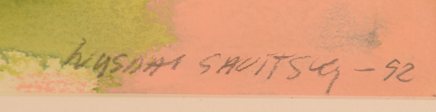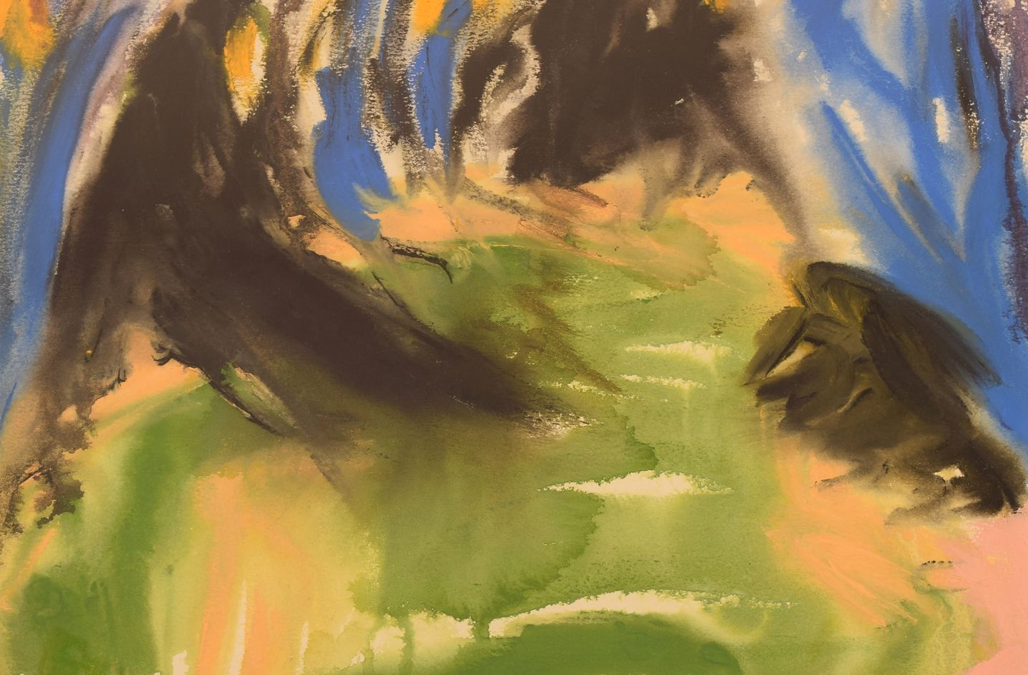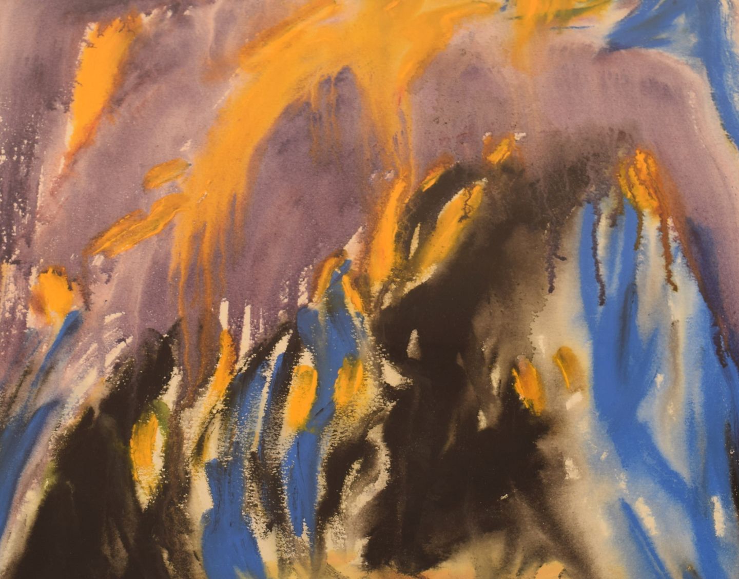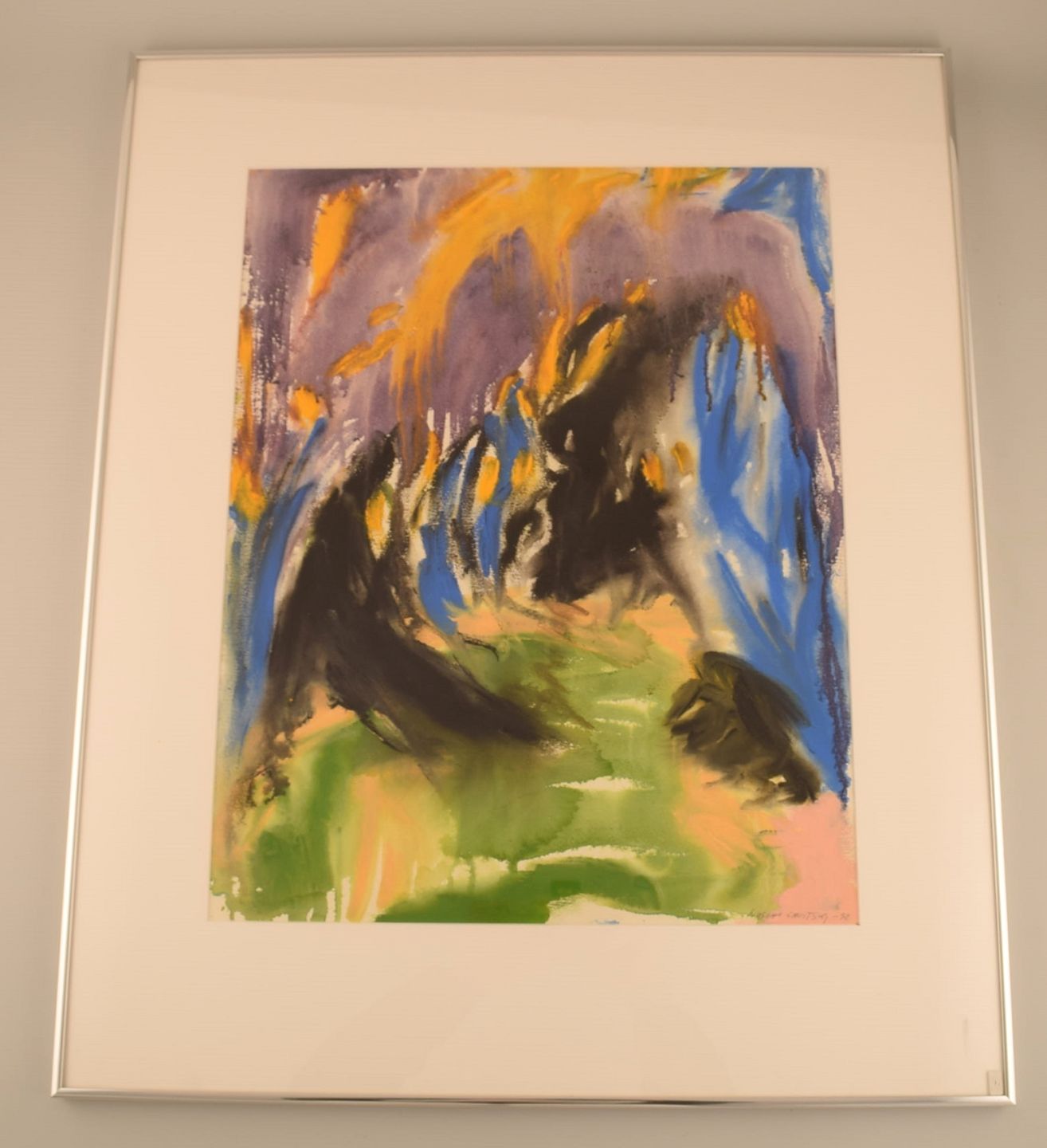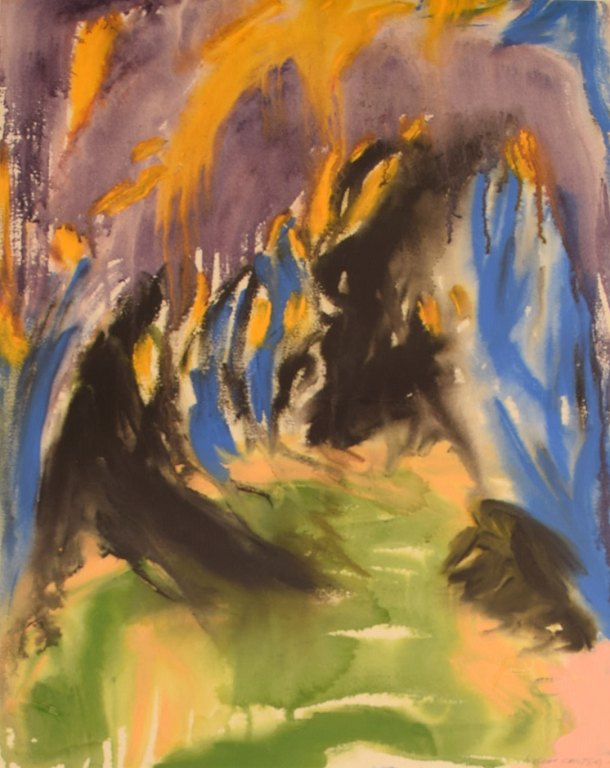 Ivy Lysdal, f 1937. Dansk keramiker og kunstmaler. Gouache på papir. Abstrakt modernistisk maleri. Koloristisk palette. Dateret 1992.