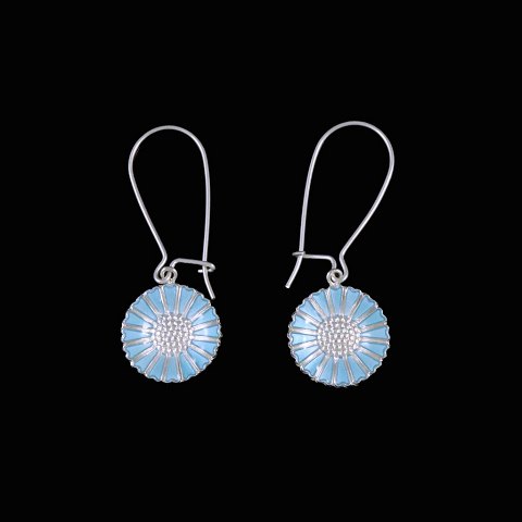 Bernhard Hertz. Silver Daisy Ear Hooks with blue enamel. 18mm