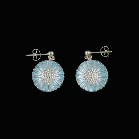 Bernhard Hertz. Marguerit / Daisy Øreringe i sterling sølv med blå emalje. 18mm