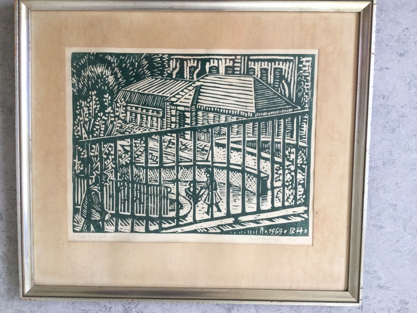 Træsnit af Bent Høyrup 1965 - "Gade op og gade ned"