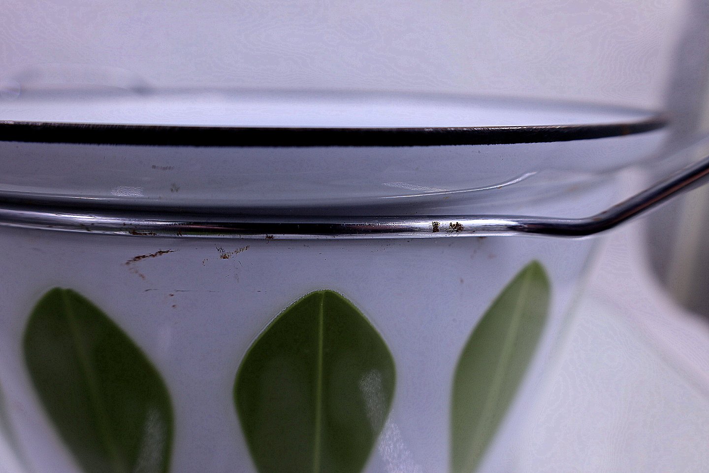 Lotus gryde i emalje med lime grøn motiver og lime grøn emalje låg. Gryden er fra Catrineholm-serien, design Grete Prytz Kittelsen.