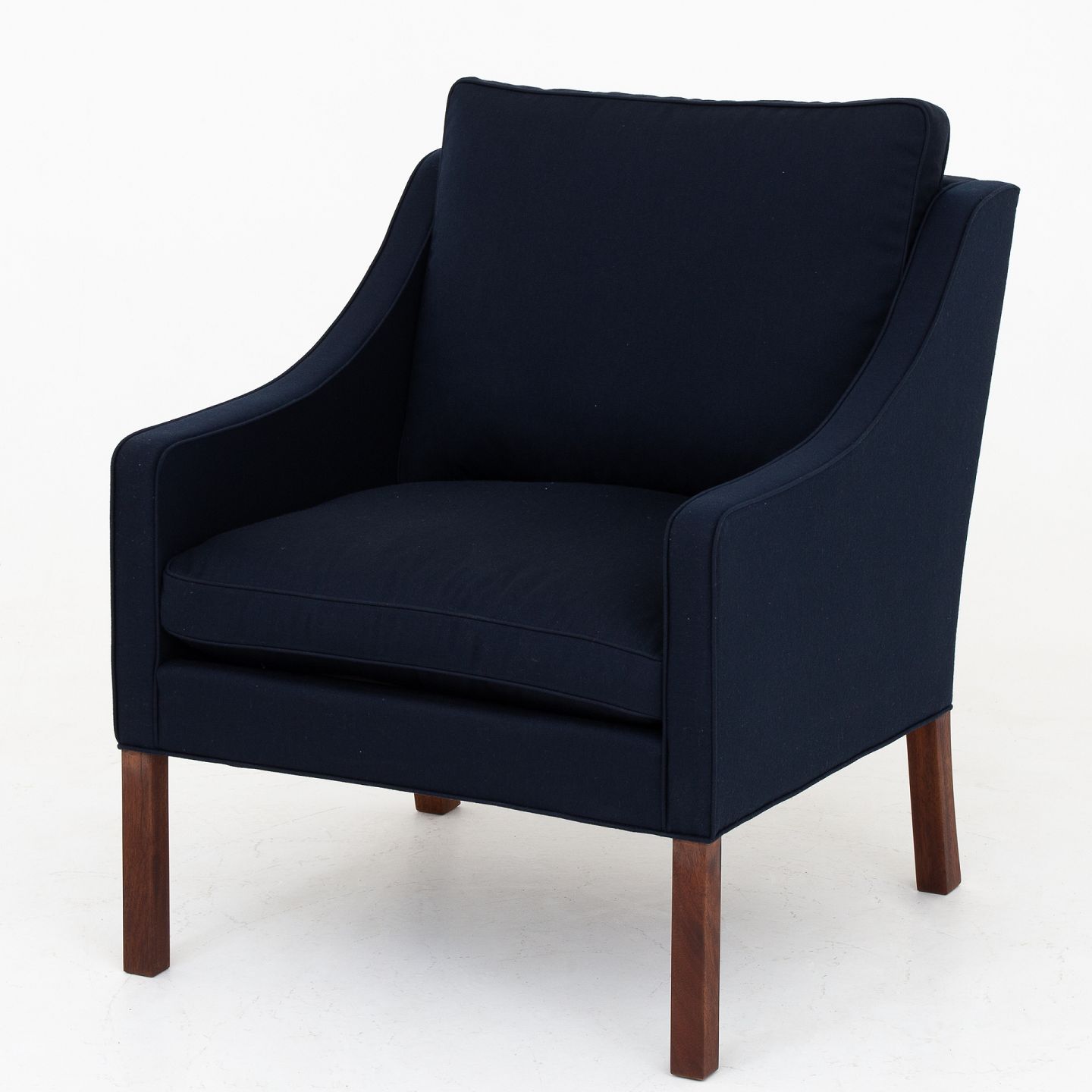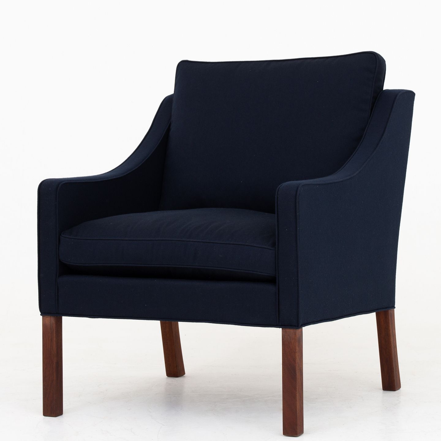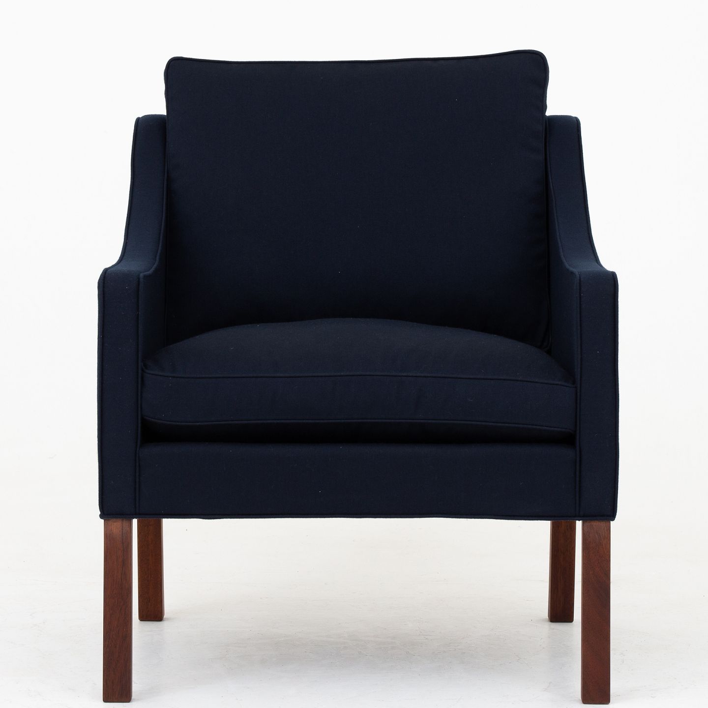 BM 2207 - Nybetrukket lænestol i tekstil 'Bogø' (farve: K1-141) med ben i mahogni.
