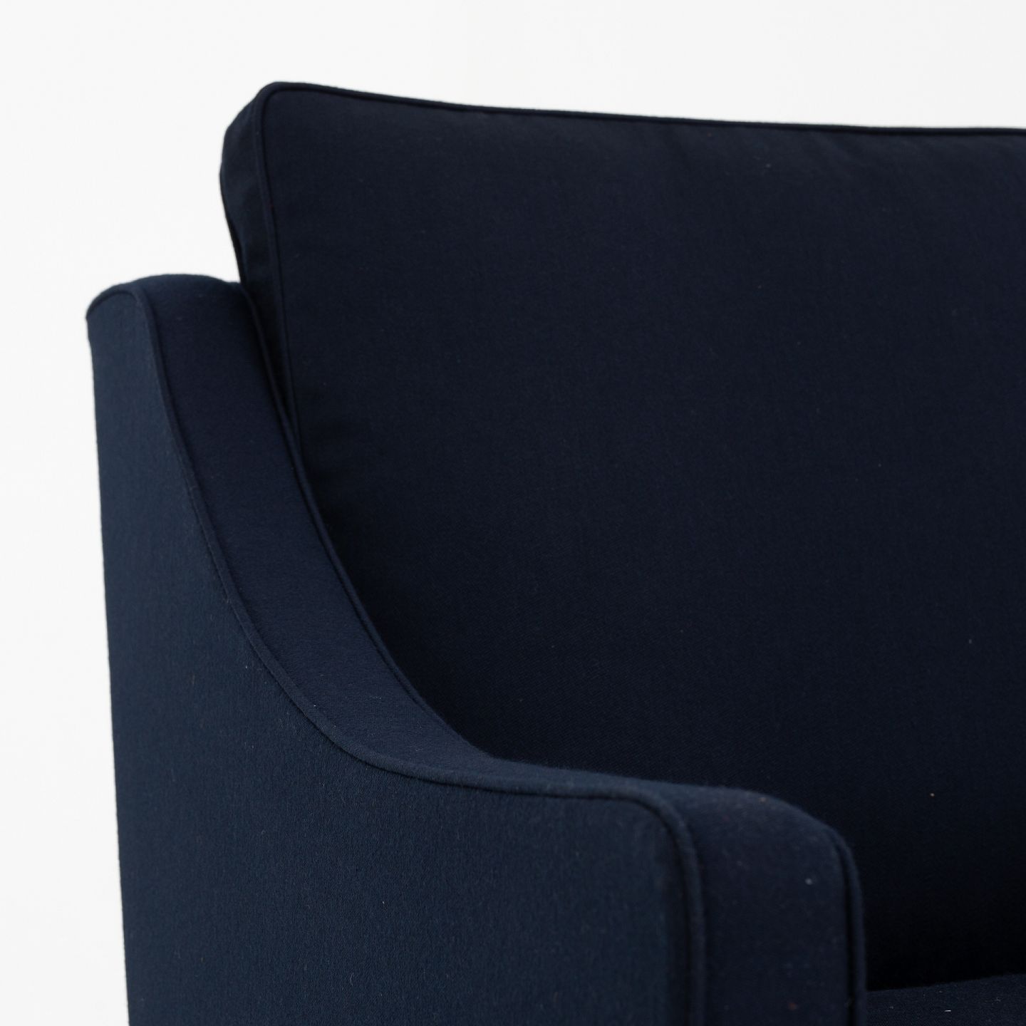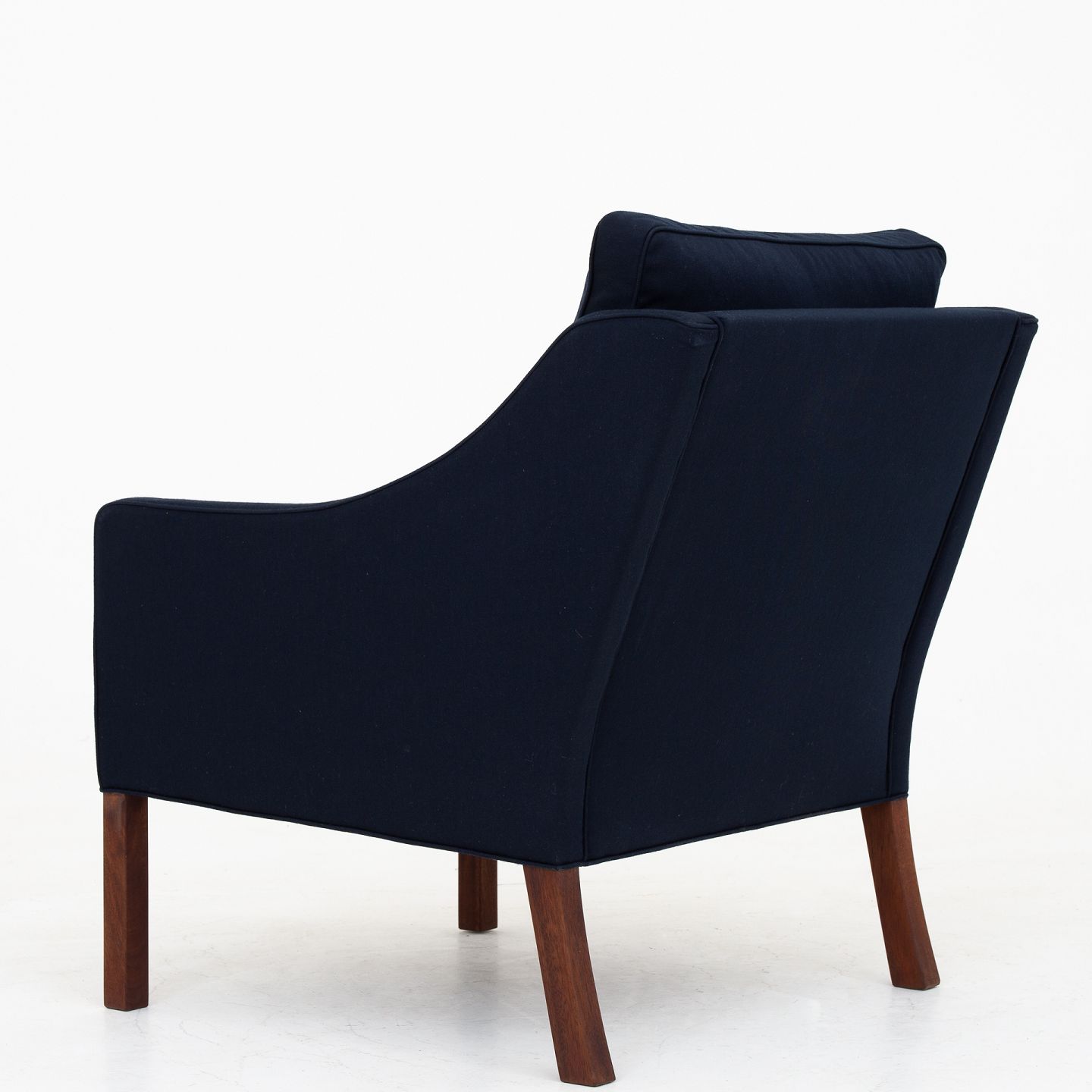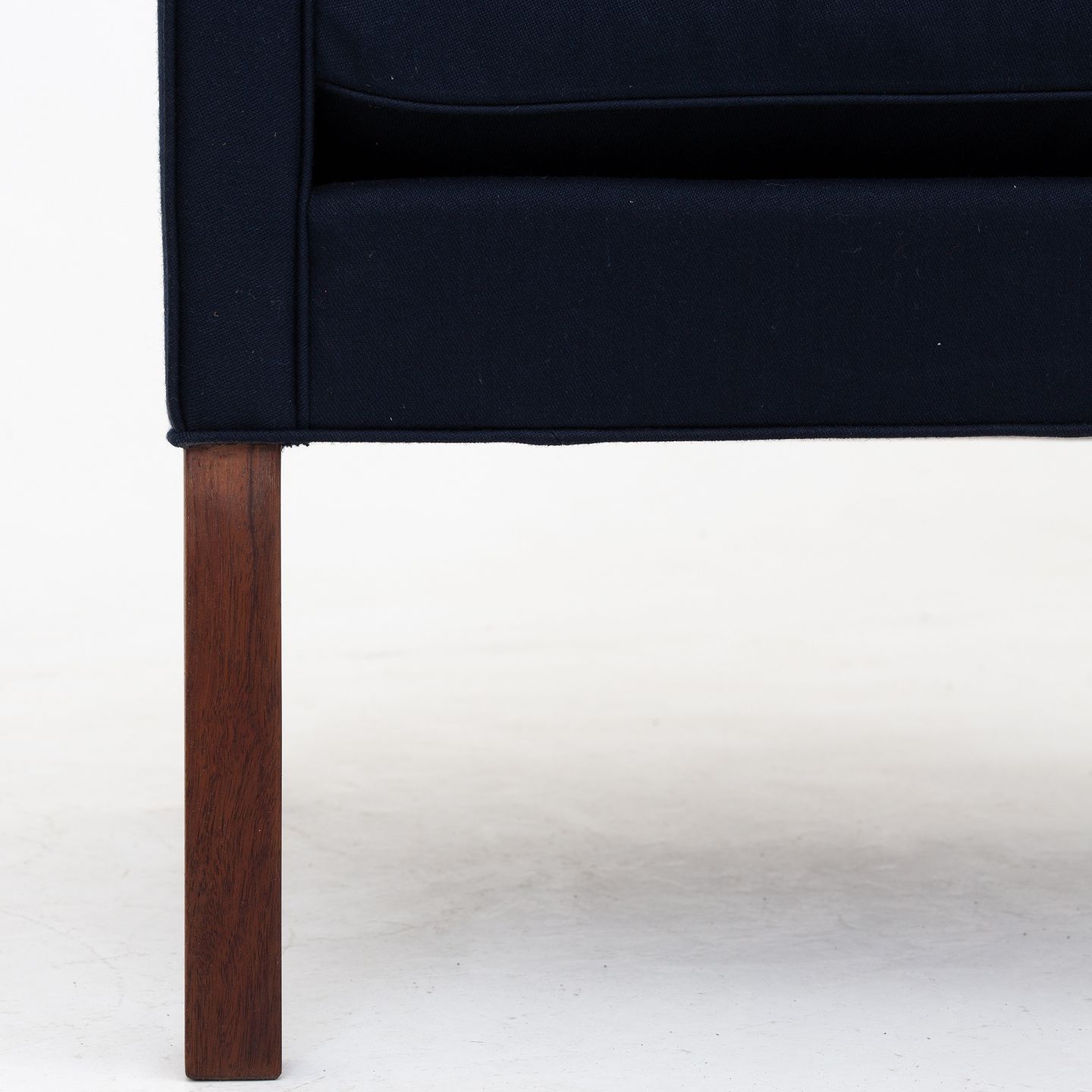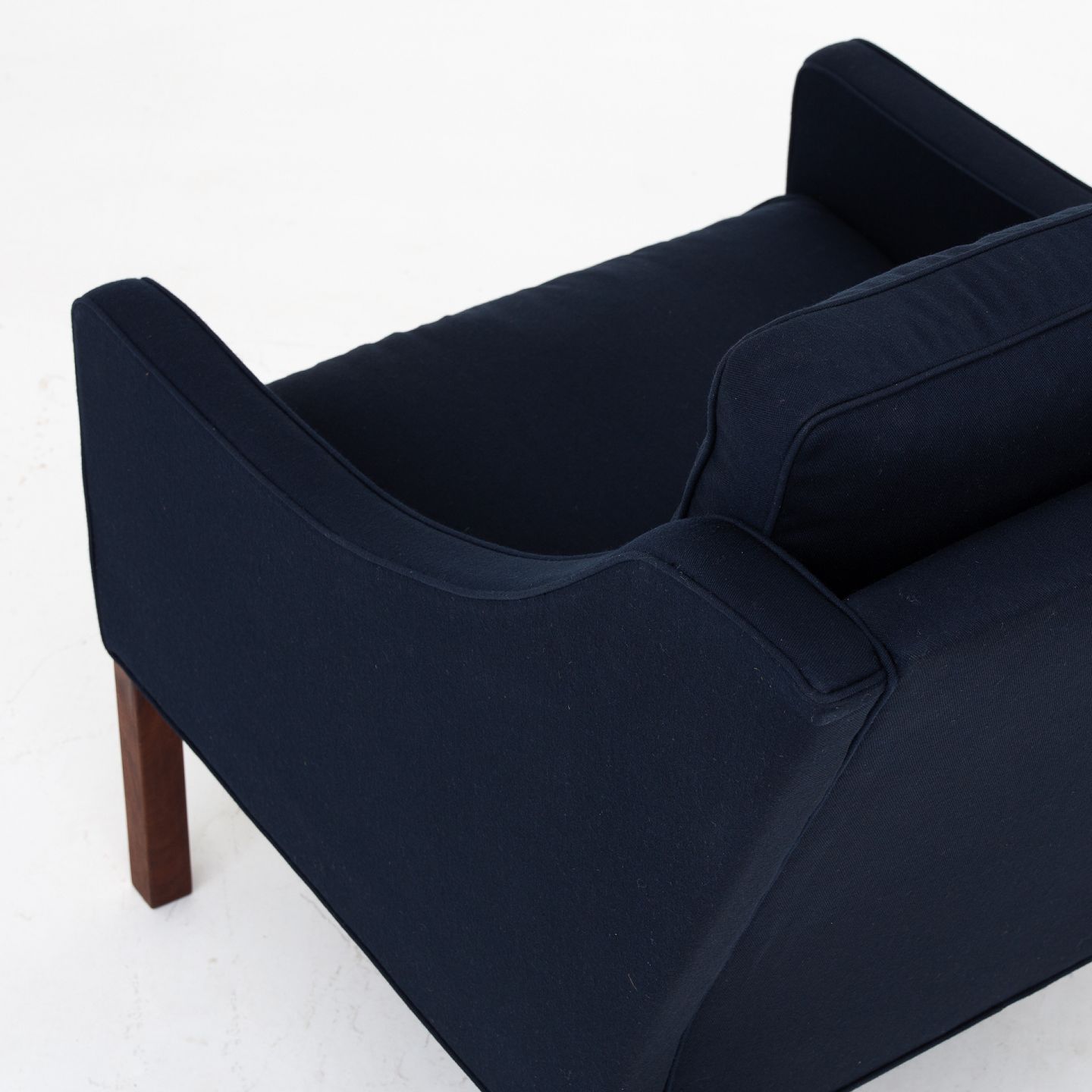 BM 2207 - Nybetrukket lænestol i tekstil 'Bogø' (farve: K1-141) med ben i mahogni.