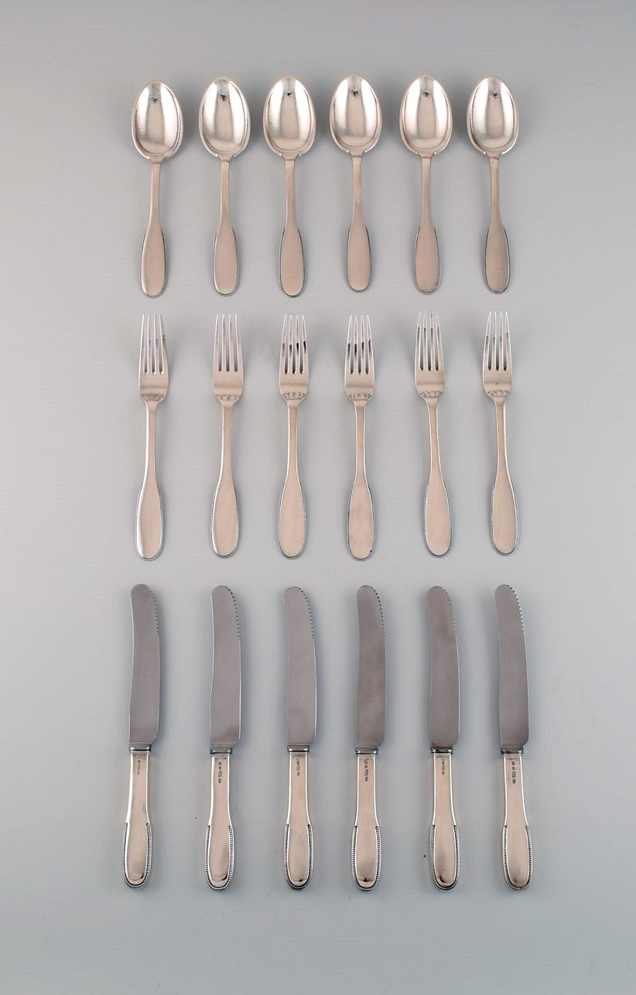 Bestående af seks middagsknive, seks middagsgafler og seks spiseskeer.