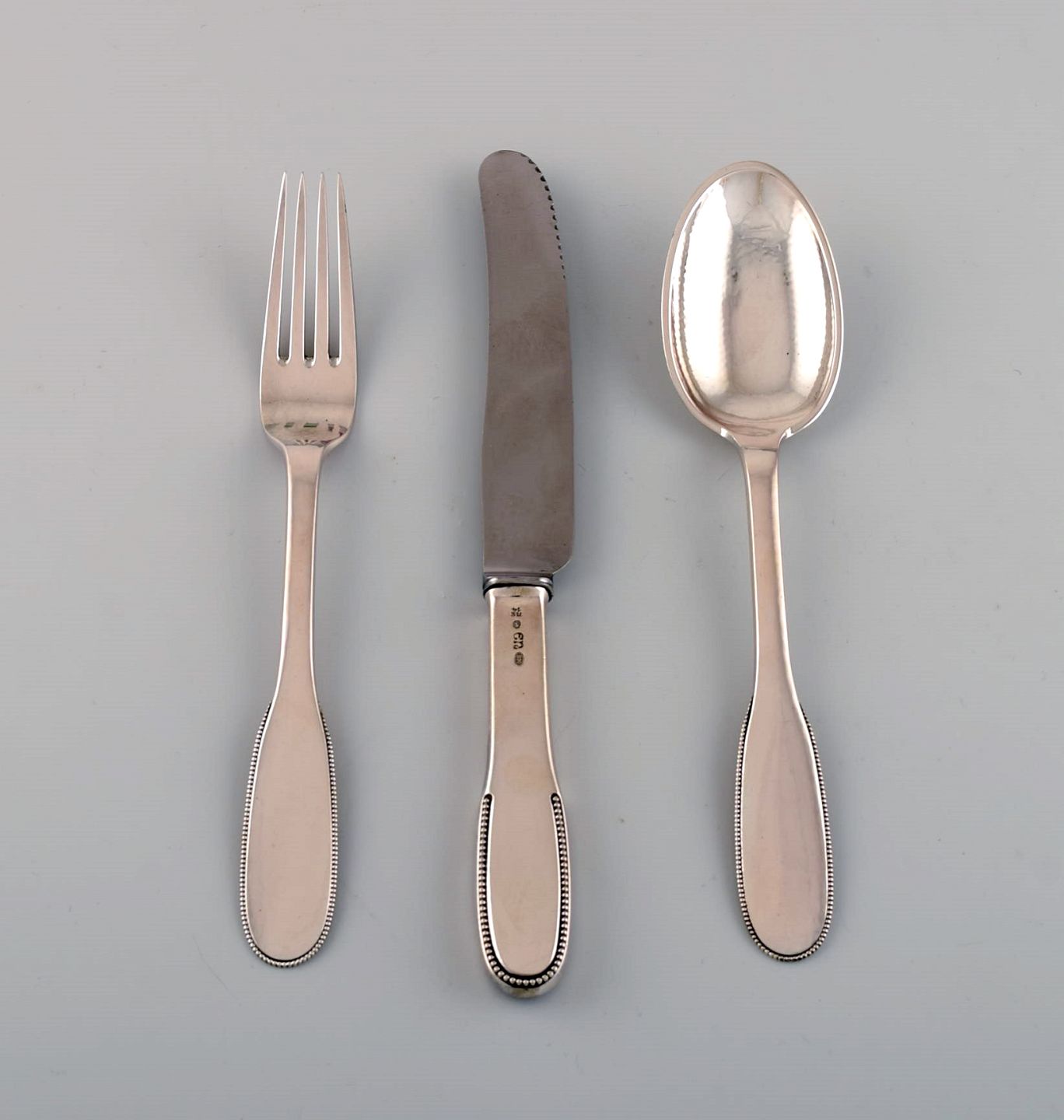 Evald Nielsen nummer 14 middagsservice i hammerslået sølv (830) til seks personer. 1920'erne.