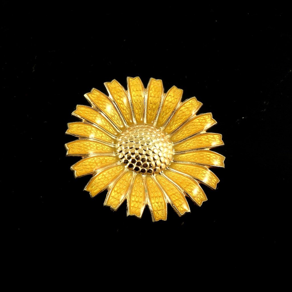 A. Michelsen Marguerit / Daisy Broche i forgyldt Sterling Sølv med gul emalje - 43mm