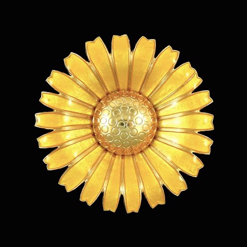 A. Michelsen. Marguerit / Daisy Broche/vedhæng i forgyldt Sterling Sølv med gul emalje - 50mm