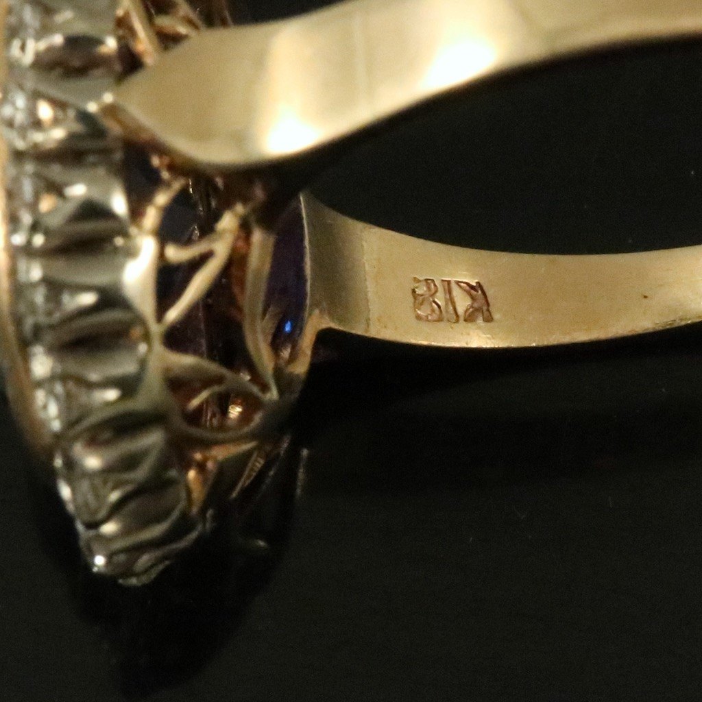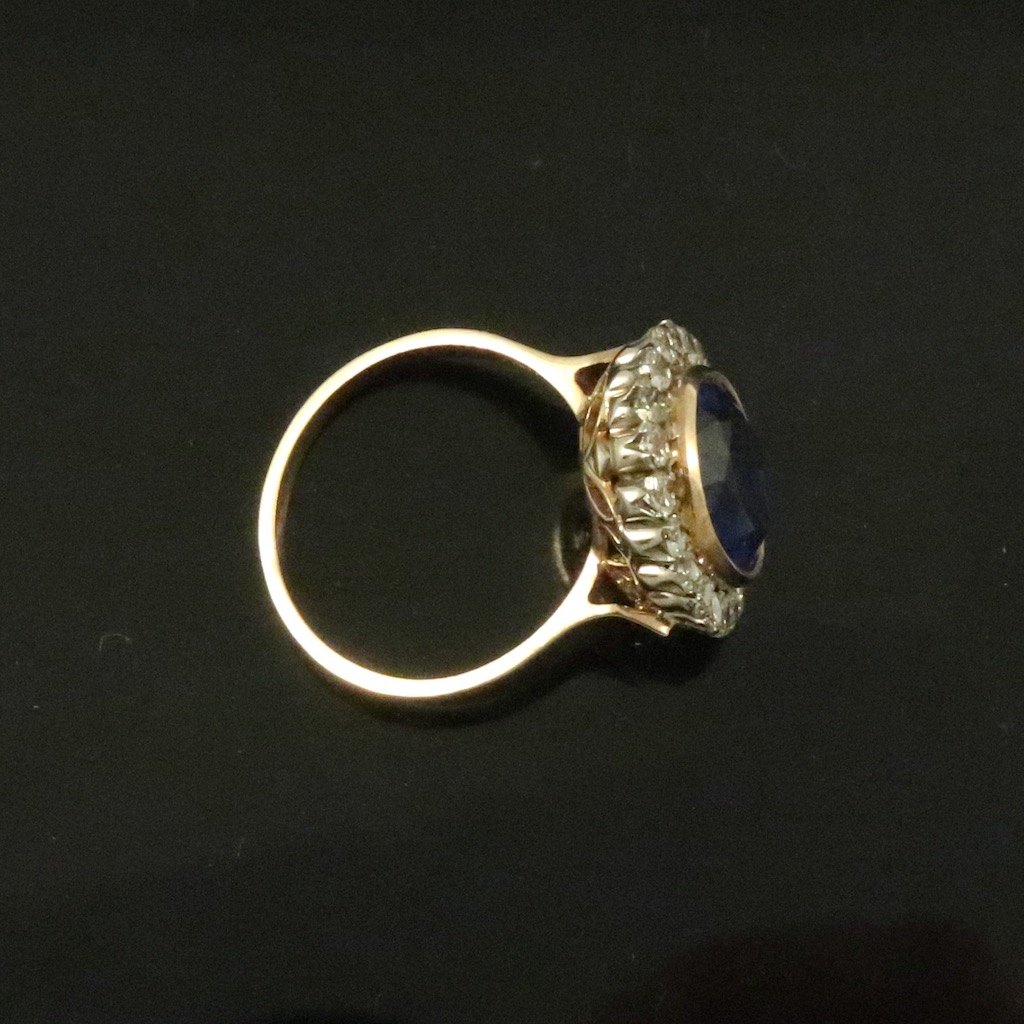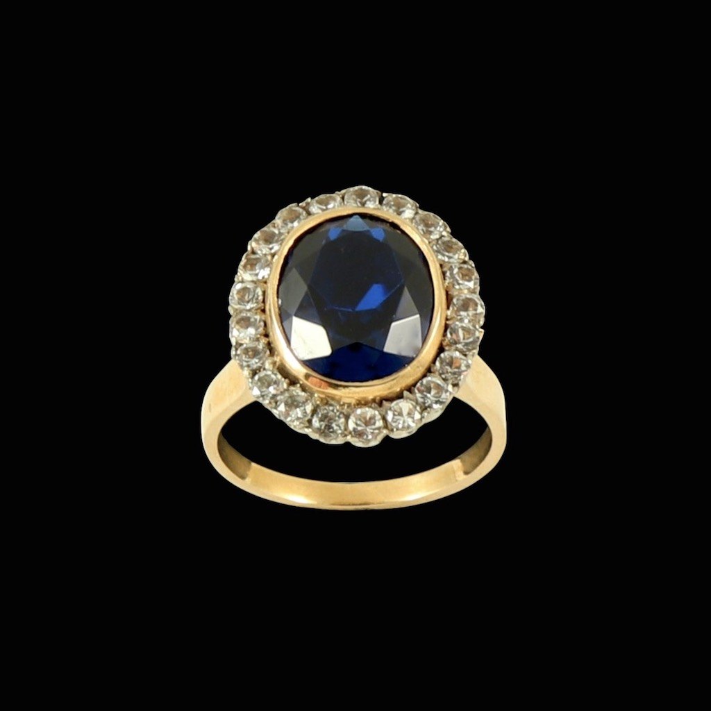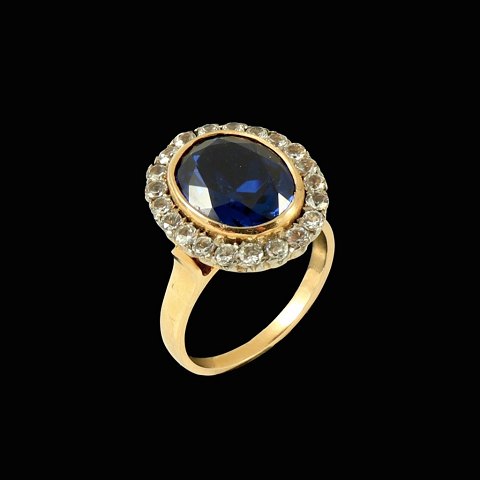 Cocktailring i 18k guld med syntetisk safir og 21 diamanter. Total 0.63ct.