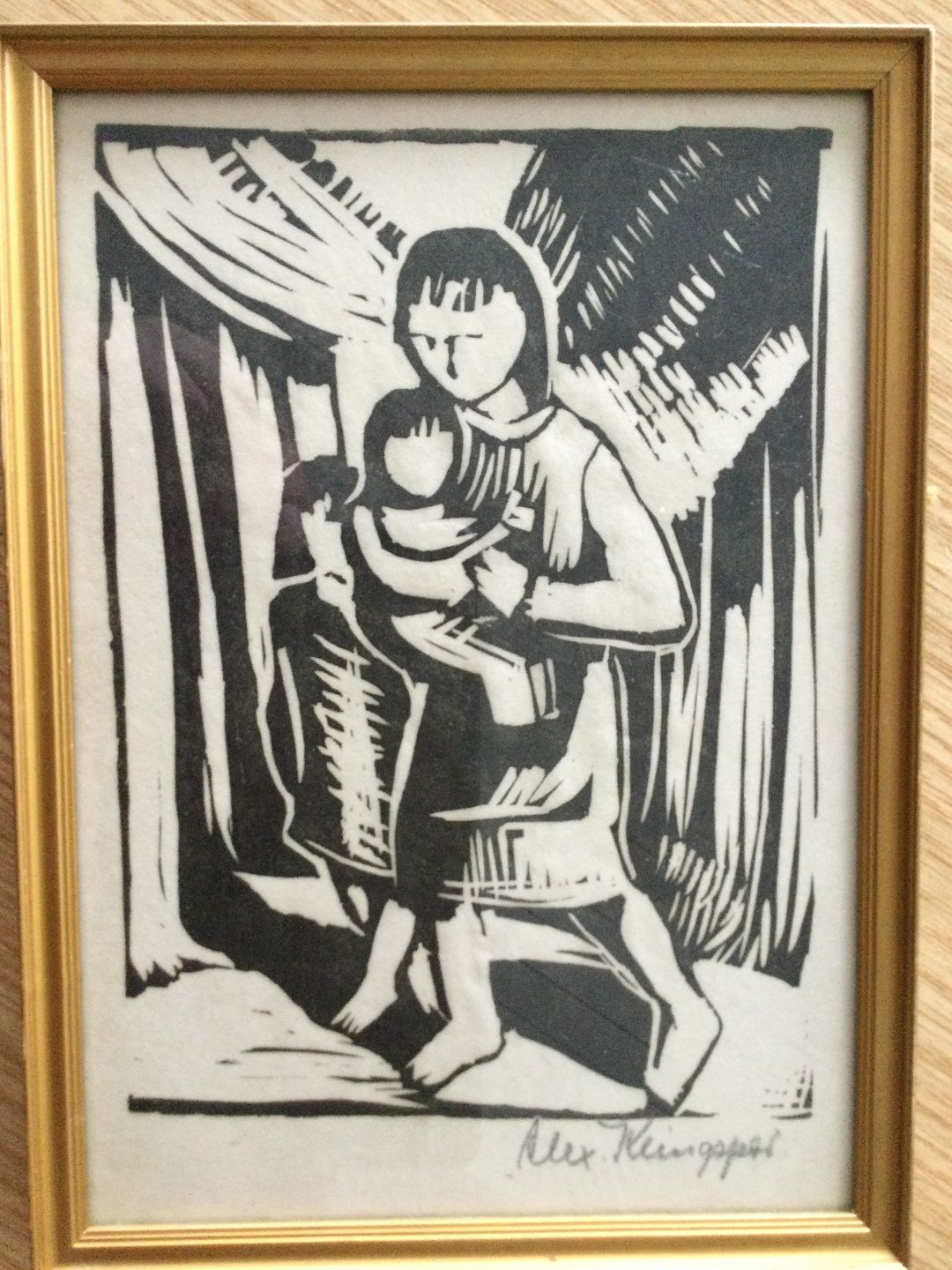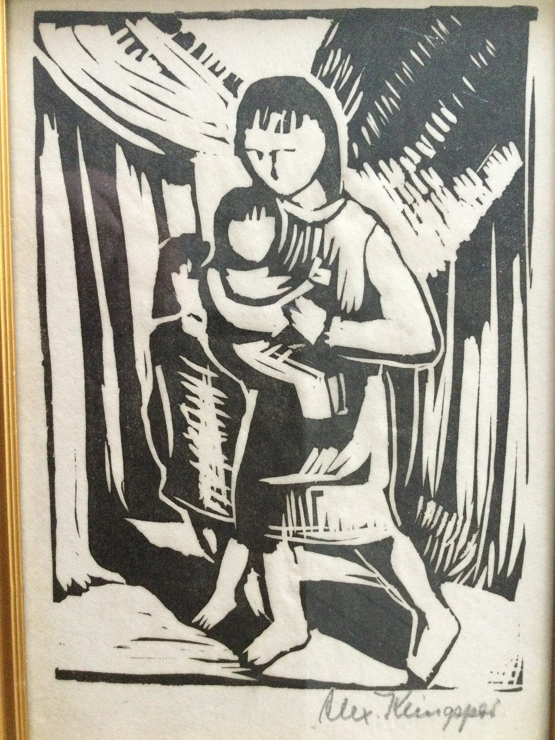Træsnit af Alexander Klingspor - Mor med barn.