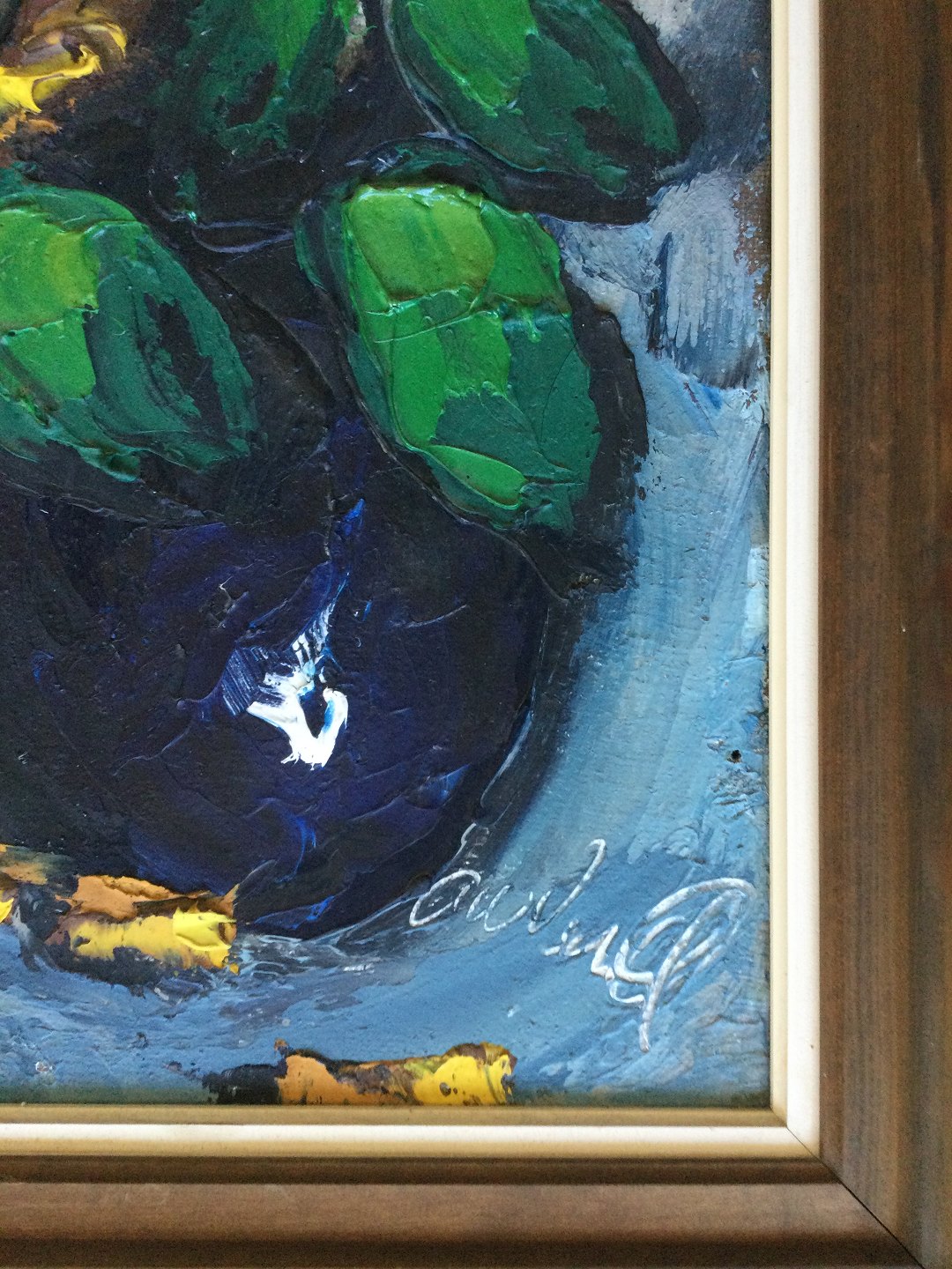 Maleri - Krukke med solsikker af Adelbert Winther Venø.