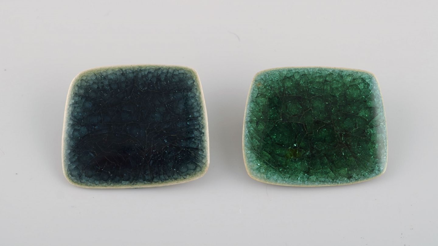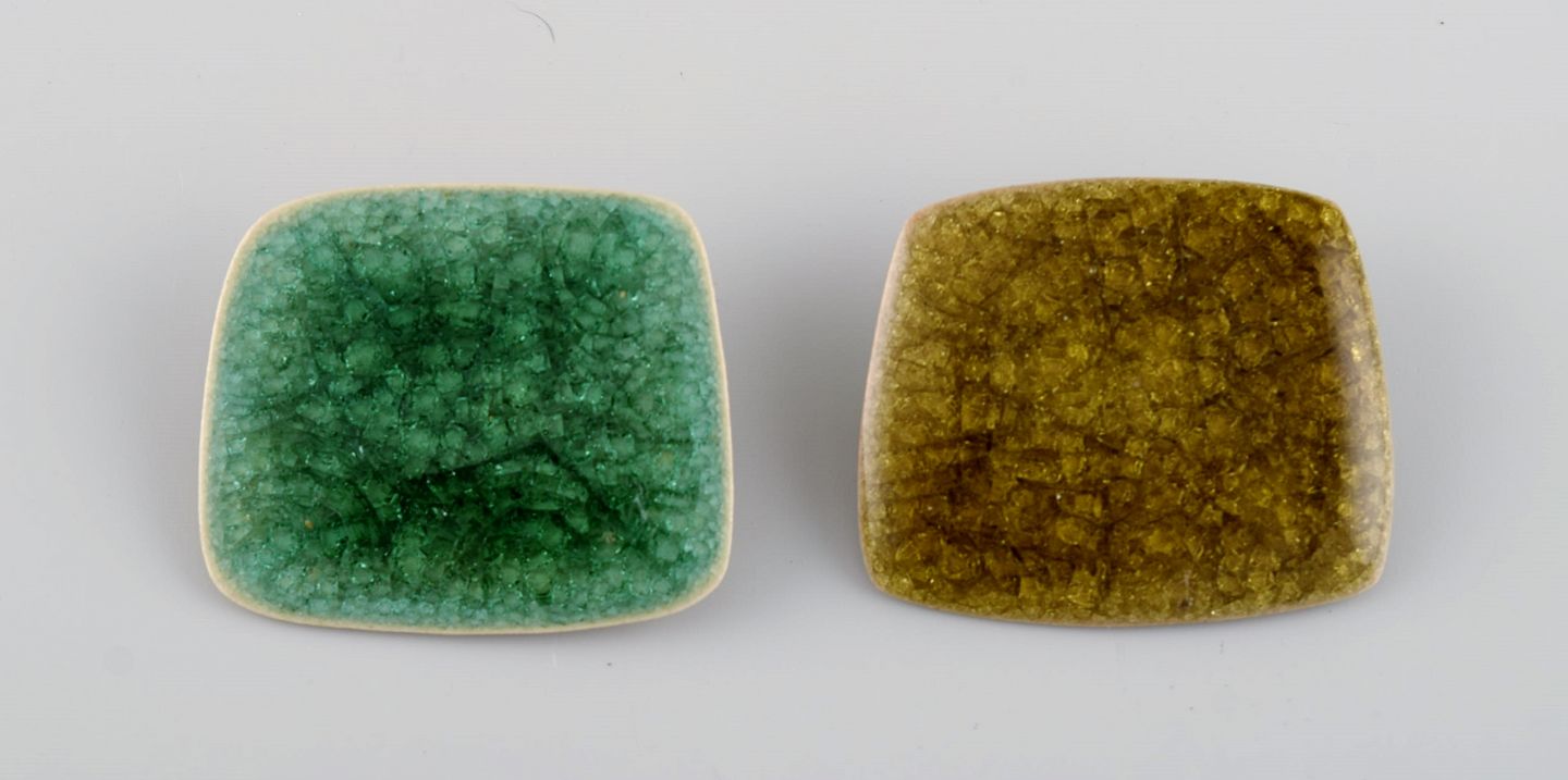 Ole Bjørn Krüger (1922-2007), dansk billedhugger og keramiker. Syv unika brocher i glaseret stentøj. 1960/70'erne.