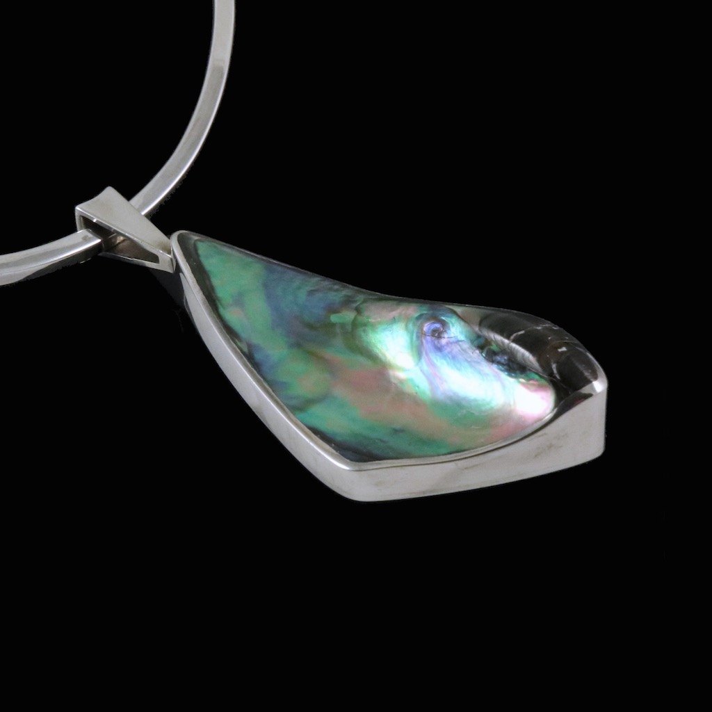 Palle Bisgaard - Denmark. Halsring #6 i sterlingsølv med stort Abelone Vedhæng #4. 1960erne