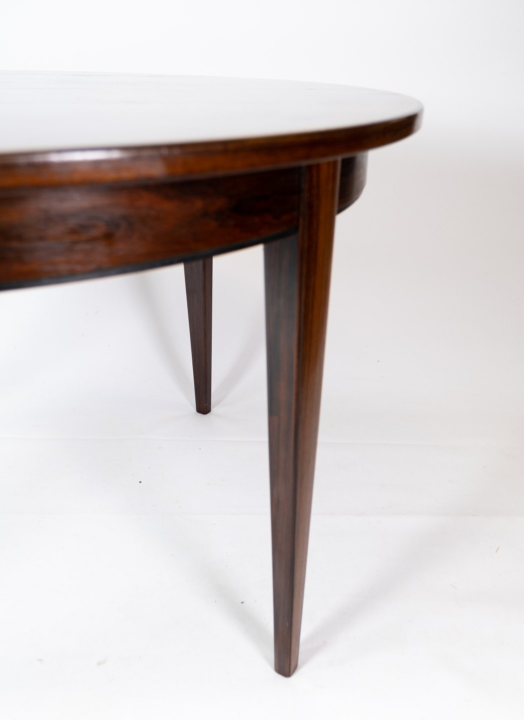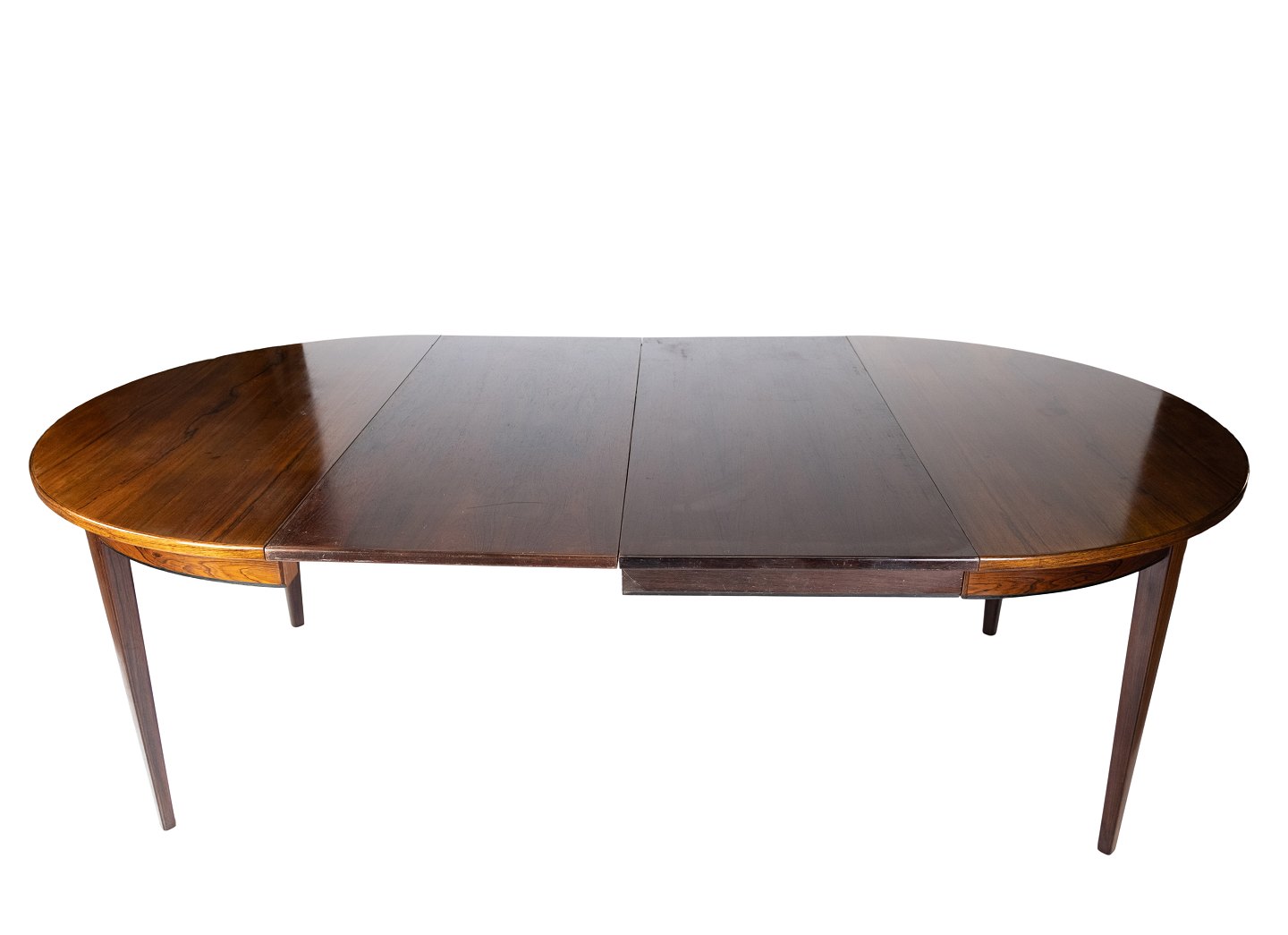 Dette spisebord af palisander er et eksempel på det fine håndværk fra Oman Junior, en anerkendt dansk møbelproducent aktiv i 1960'erne. De varme toner og smukke årer i palisander giver bordet en tidløs elegance og en markant æstetik.
