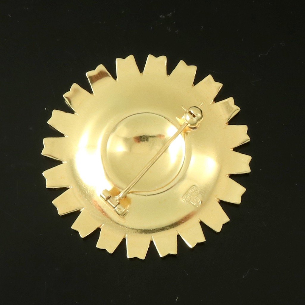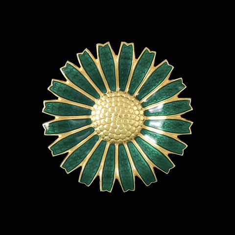 A. Michelsen Marguerit / Daisy Broche i forgyldt Sterling Sølv med grøn emalje - 43mm