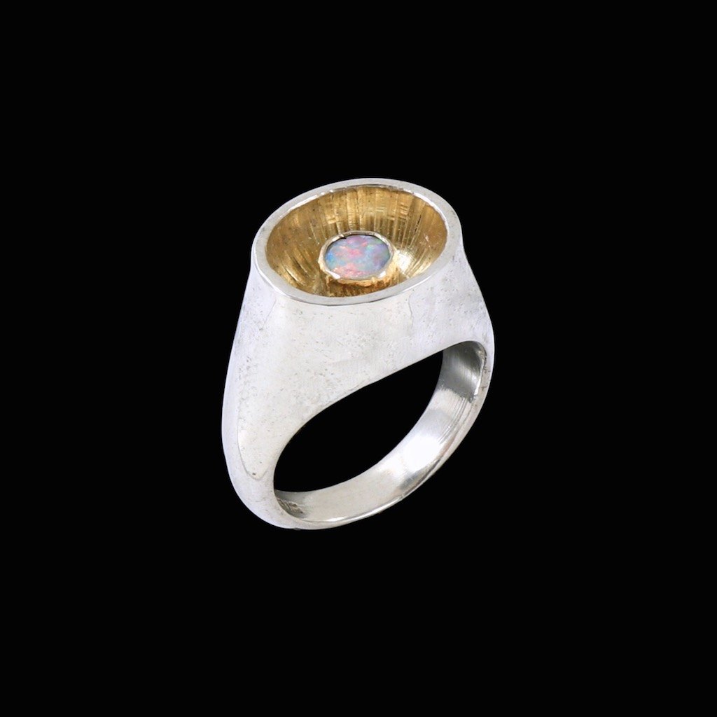 Ole Waldemar Jacobsen. Ring i Sterling sølv med guld med 18k guld og opal.
