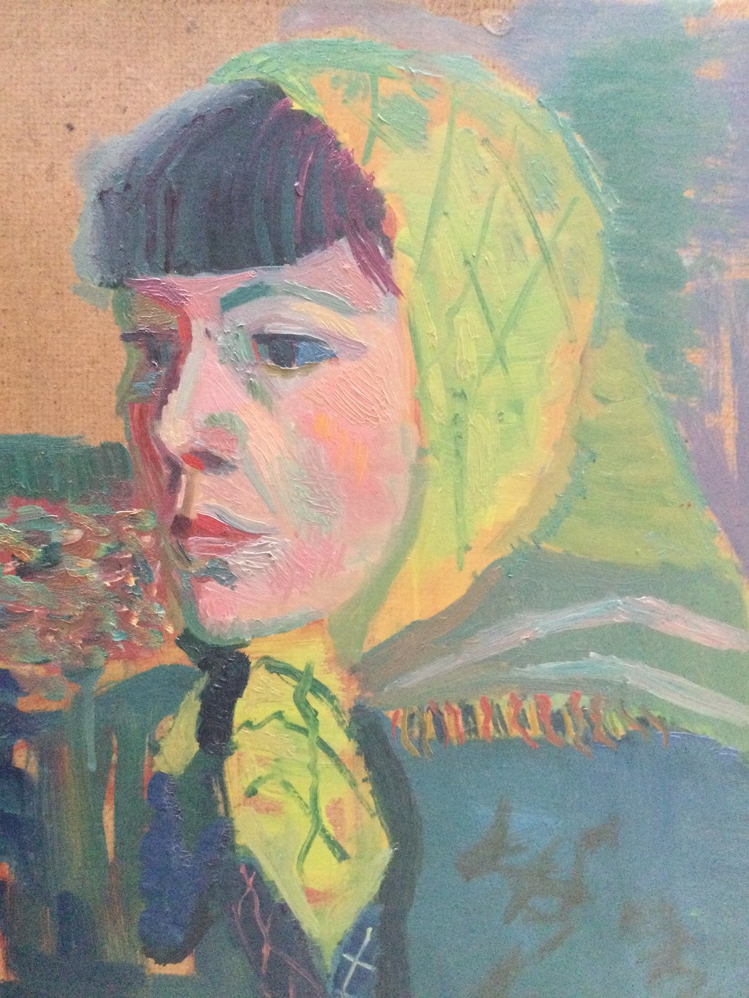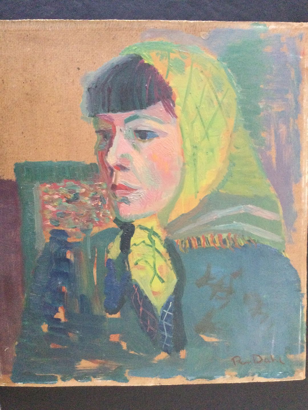 Maleri af Peer Lorentz Dahl - Portræt af kvinde med tørklæde.