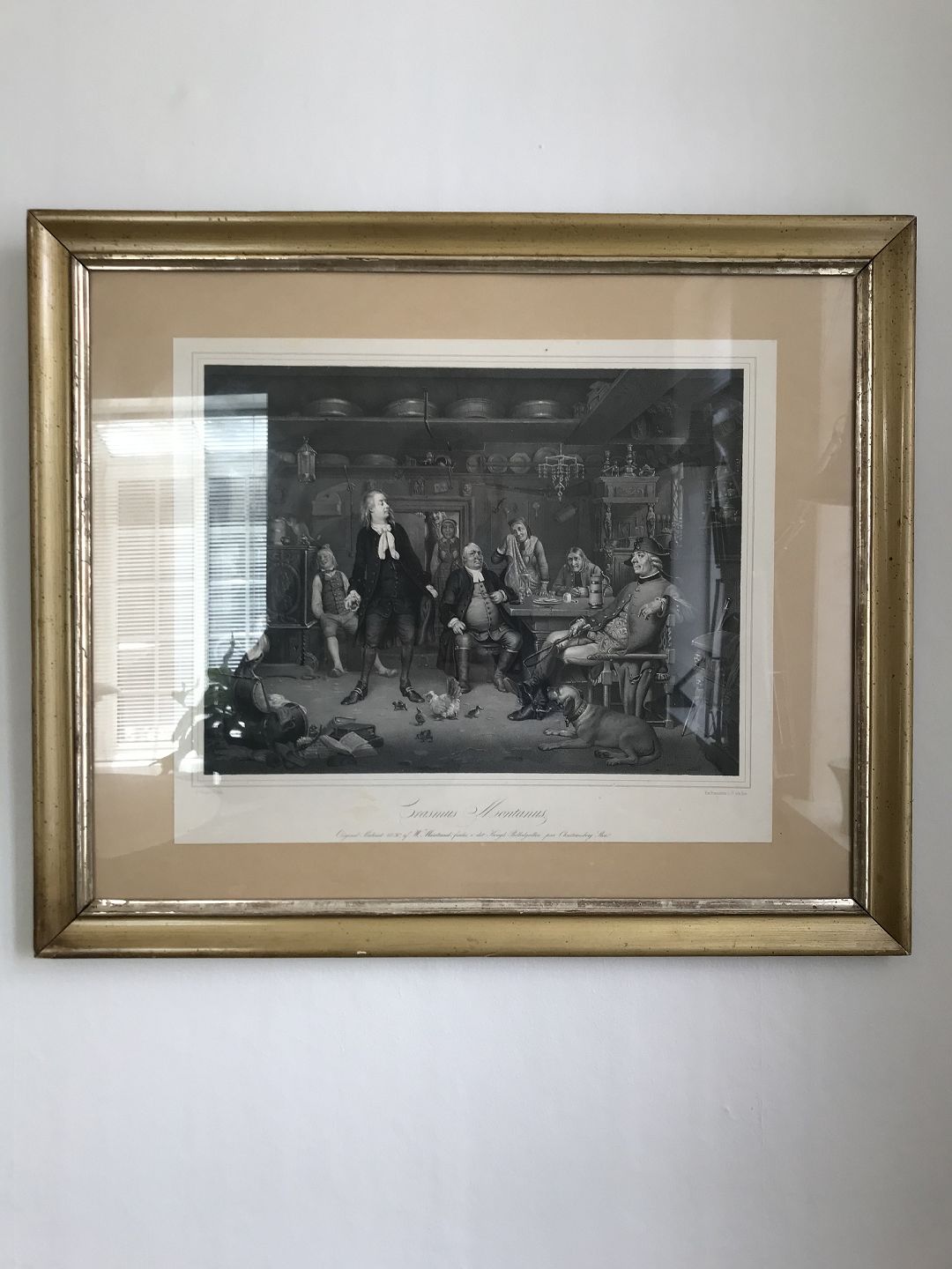 Erasmus Montanus. P. Gemzøe efter W. Marstrand. Mål med ramme 54 x 64 cm. Guldsølv ramme.