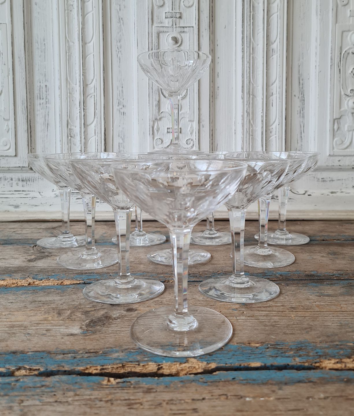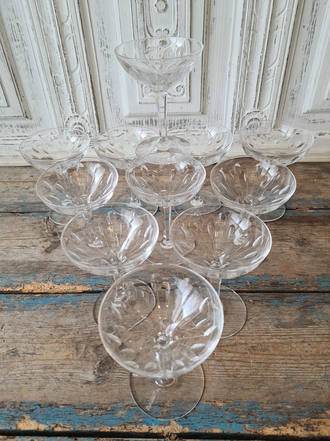 Sæt på 11 stk smukke franske champagne skåle i krystal
