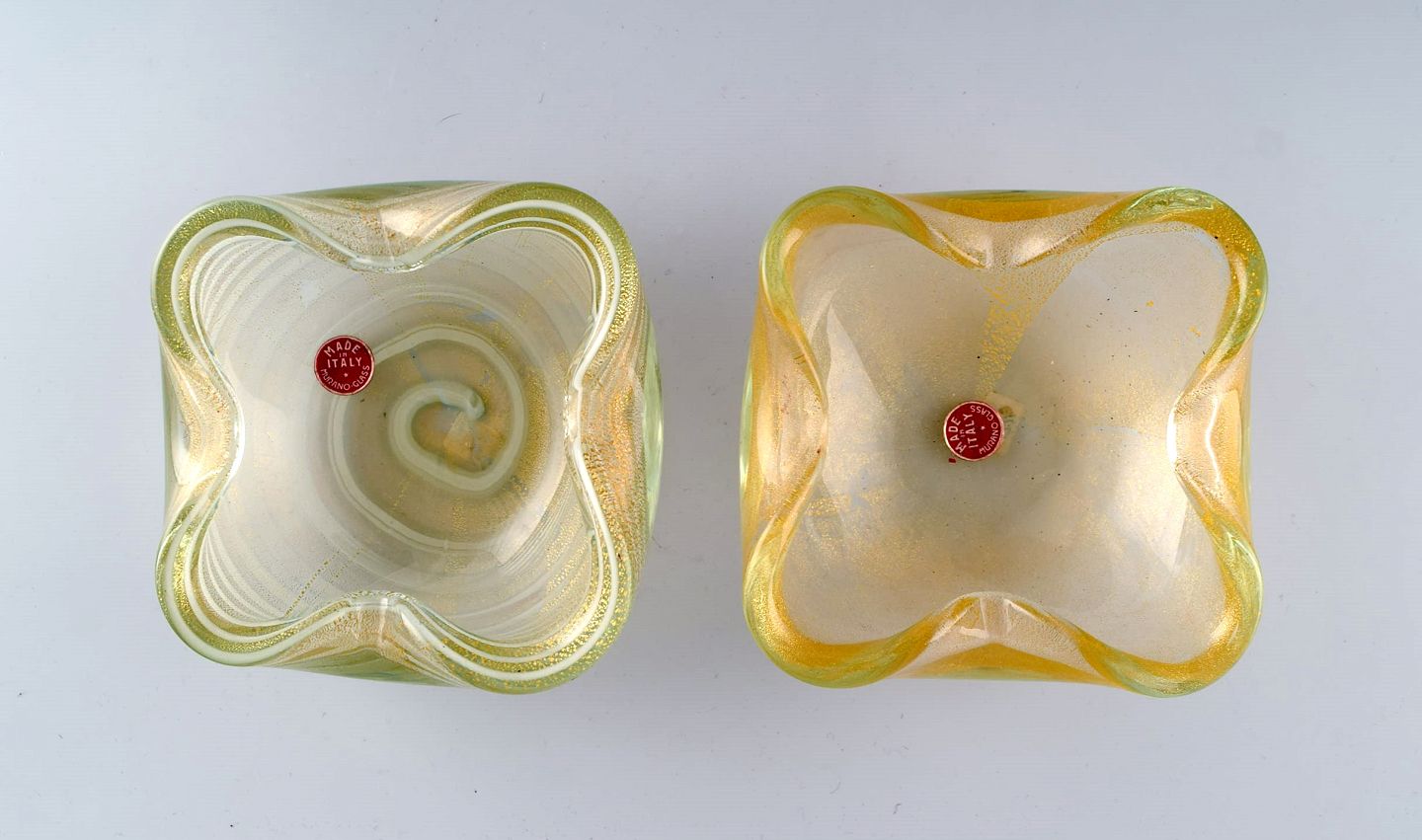 To Murano skåle i mundblæst kunstglas. Italiensk design, 1960'erne.