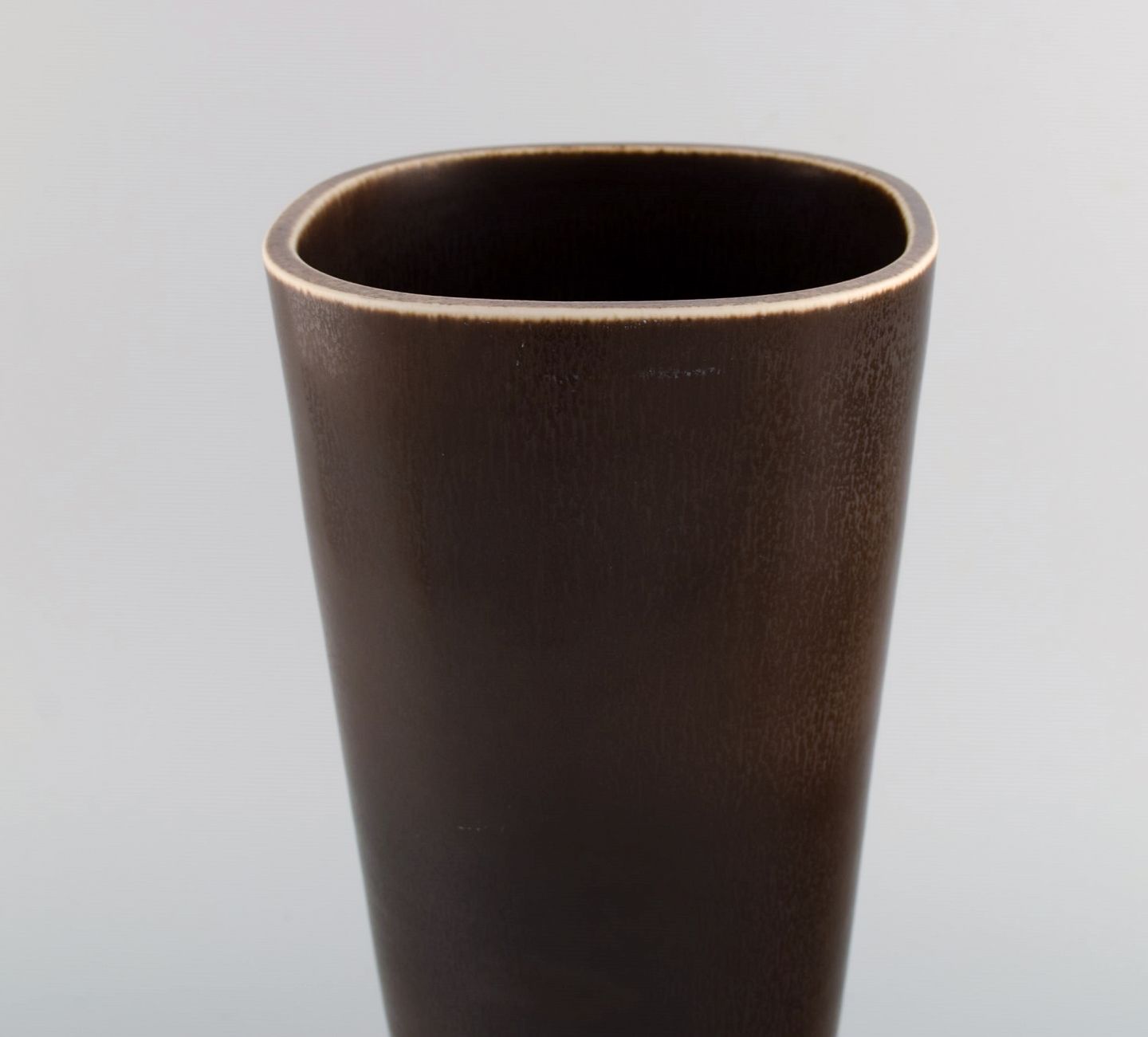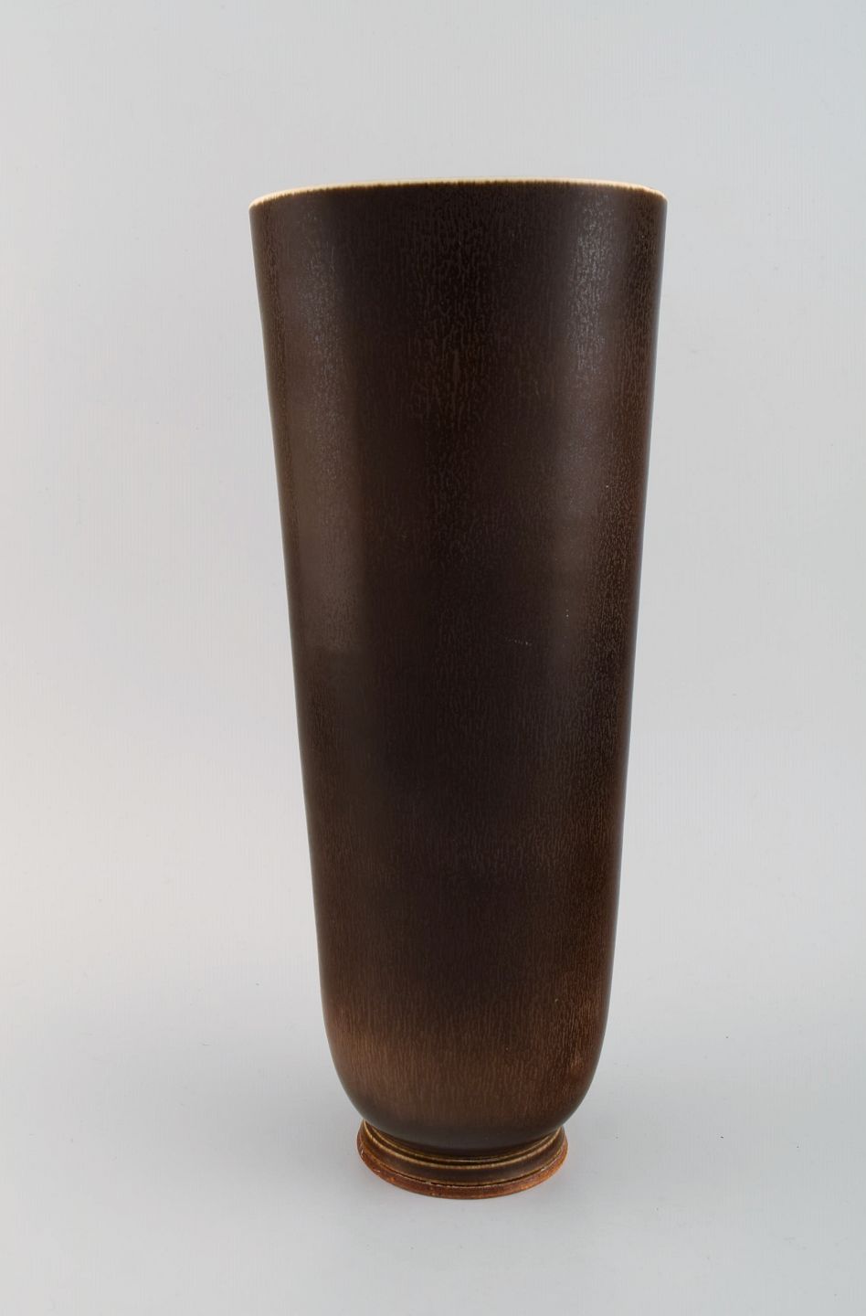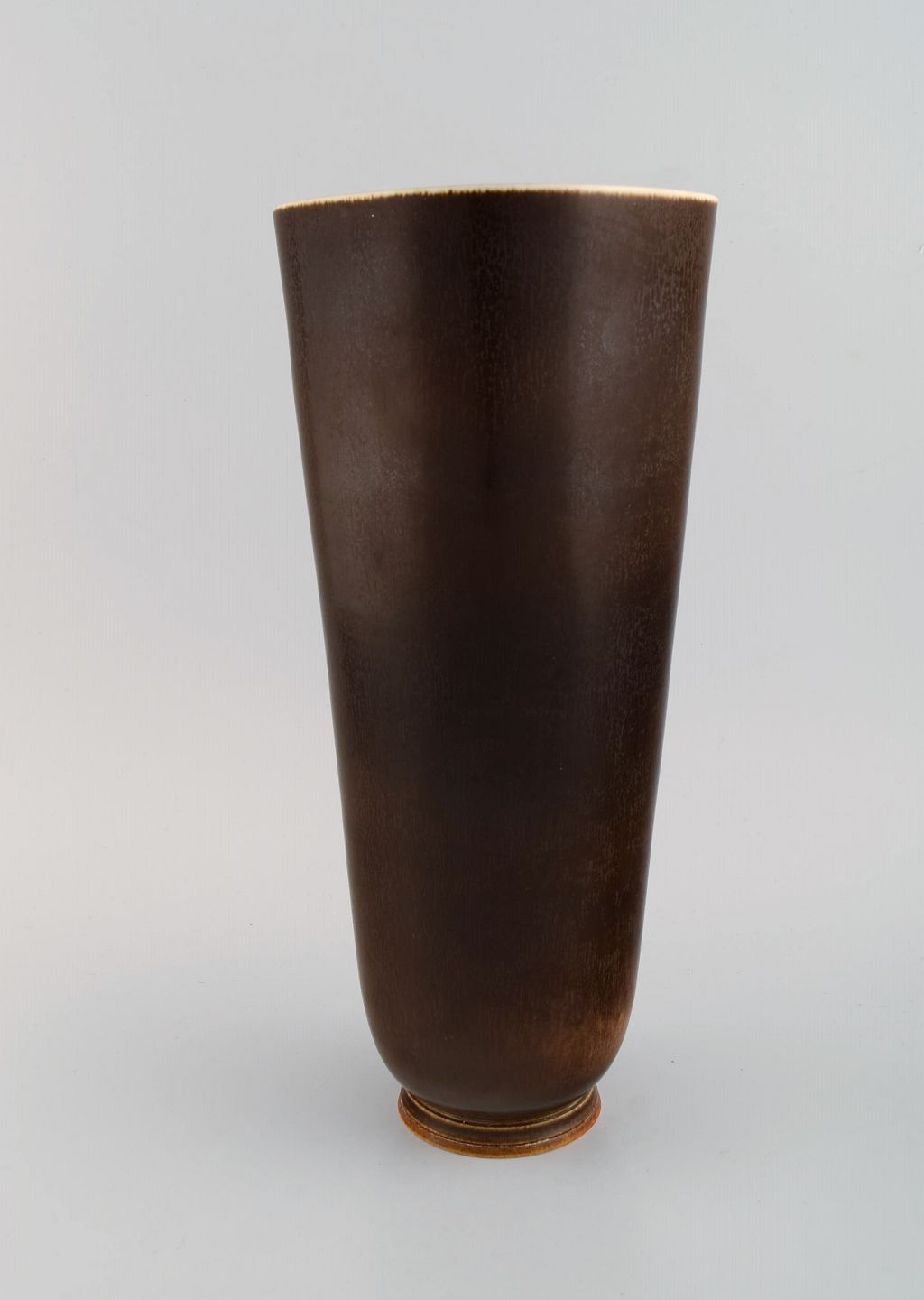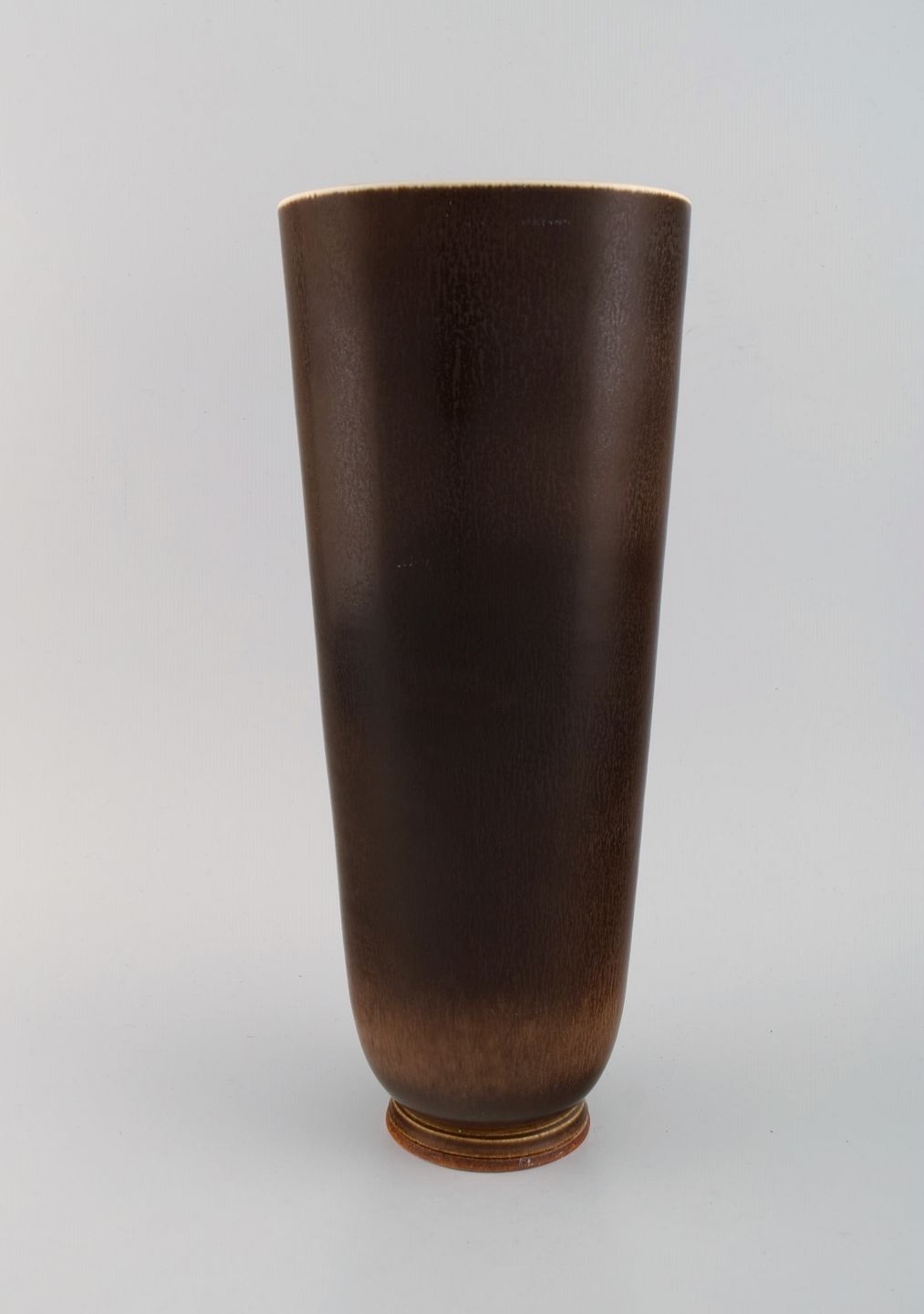 Berndt Friberg (1899-1981) for Gustavsberg Studiohand. Stor vase i glaseret stentøj. Smuk glasur i brune nuancer. Dateret 1971.