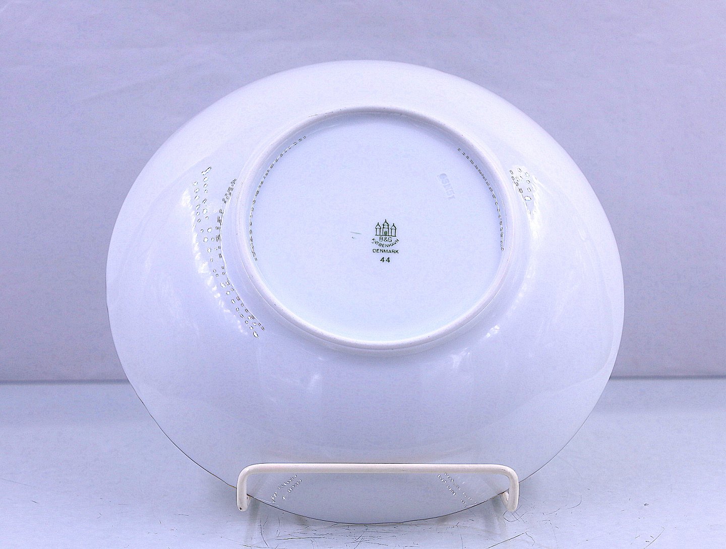 Skål i hvidt kantet porcelæn med bred guldkant og strøblomster